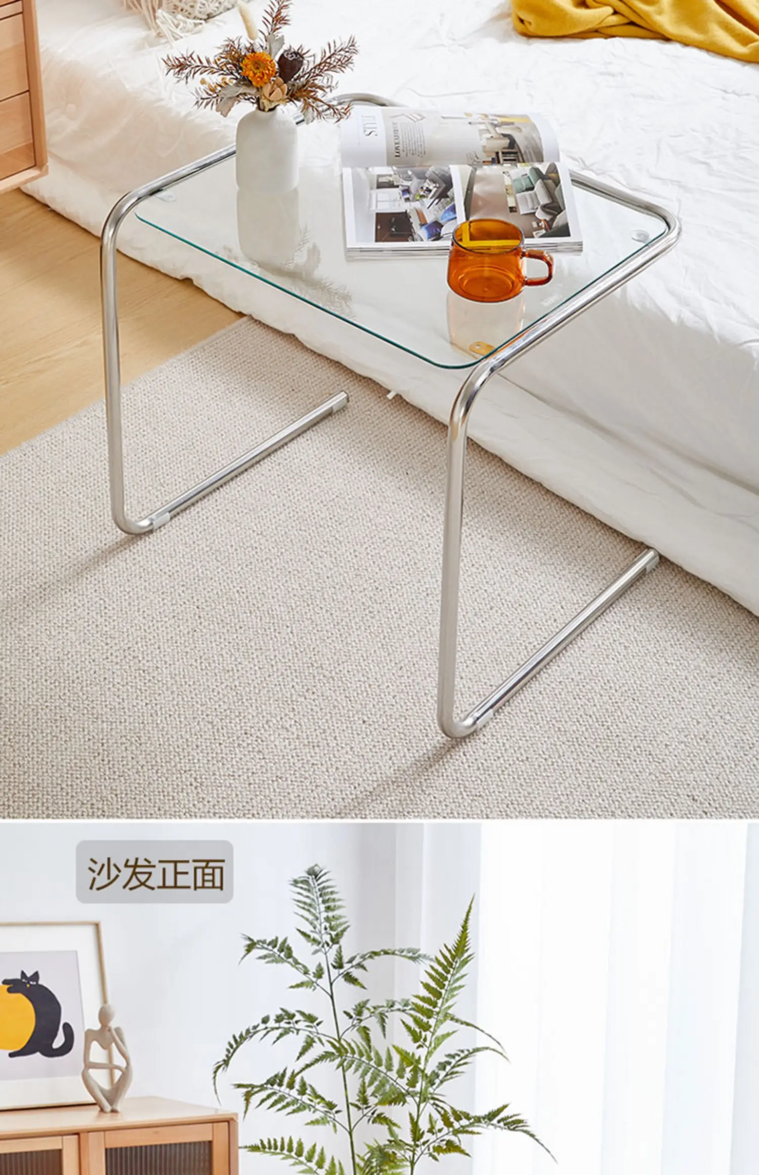 Transparent Side Table Medieval Stainless Steel Crystal Glass Coffee Table Home Room Side Tables Homestay Photography Base Desk