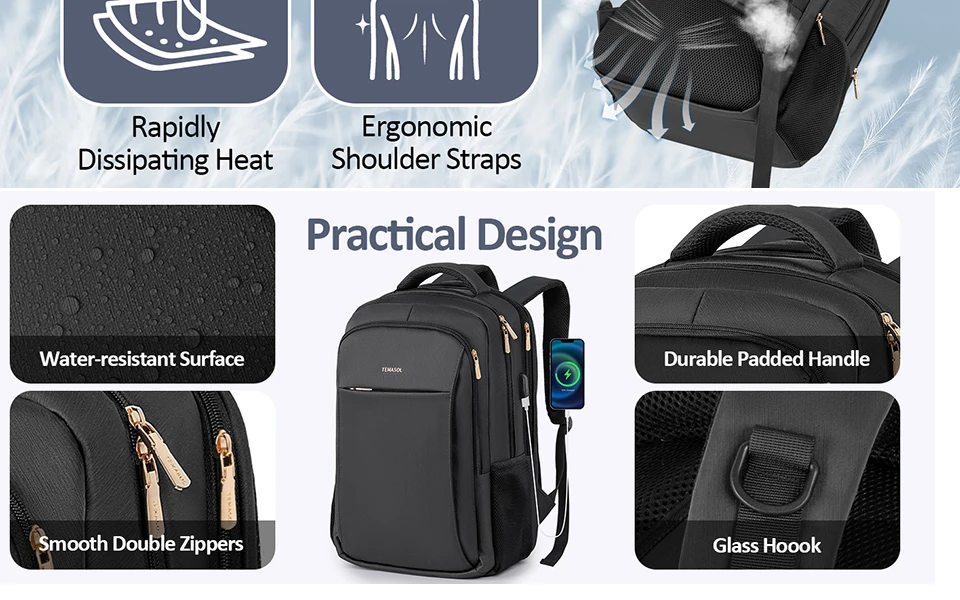 Waterproof Men Backpack Business Office Back Bags USB Charging 15.6 Inch Laptop Casual School Backpacks Rucksack Male Backpack