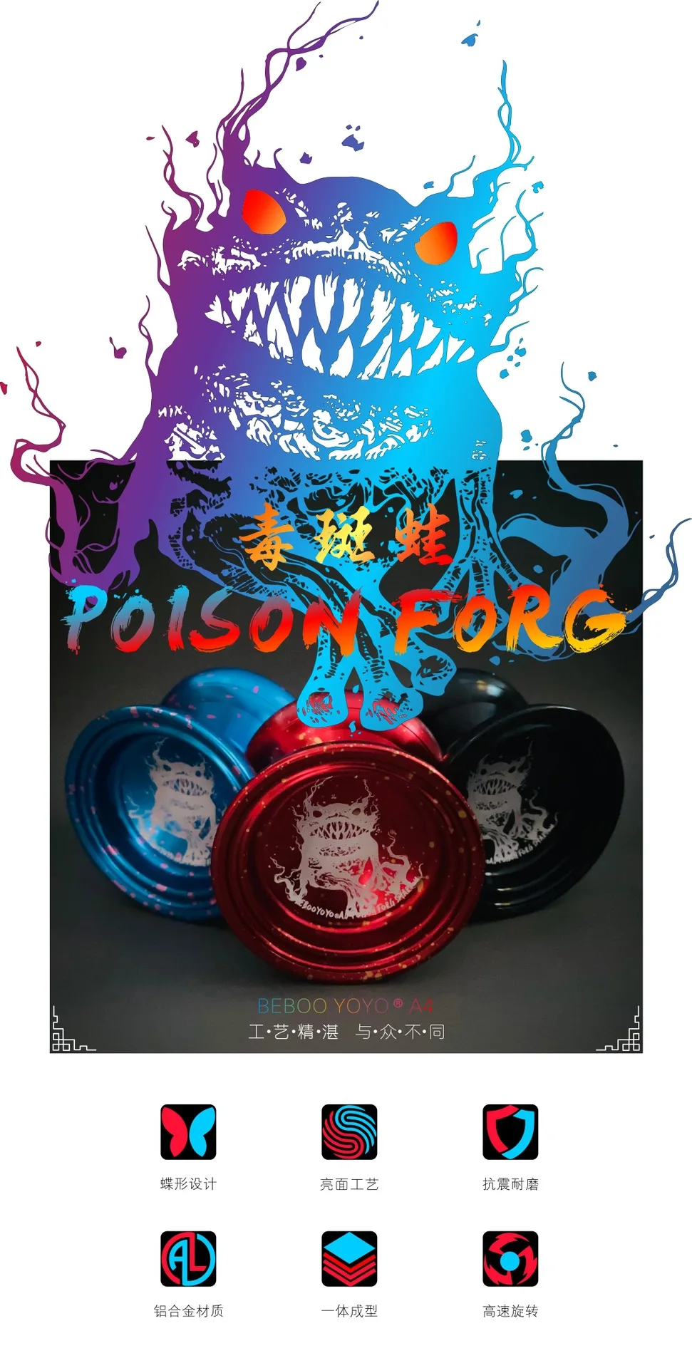 Trendy Alloy Yoyo Ball BEBOO YOYO A4 Poison Spot Frog Blue Pink Boy Alloy Toy Yo-yo Free All Kinds Of Accessories