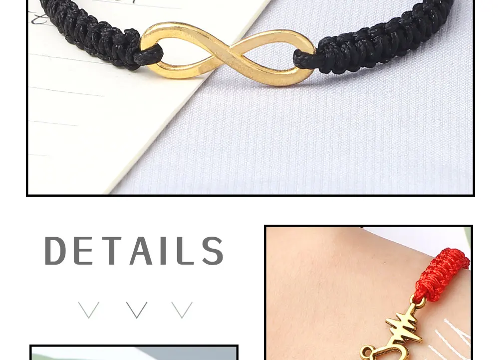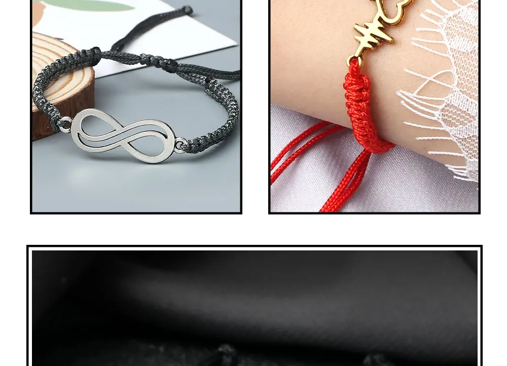Trendy Creative Bracelet for Women Men Charm Black Thread String Wristband Adjustable Lucky Infinity Yoga Jewelry Gift Bracelets