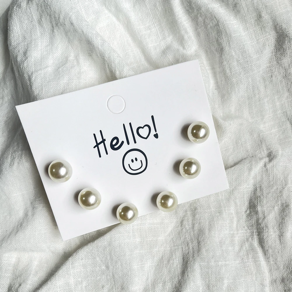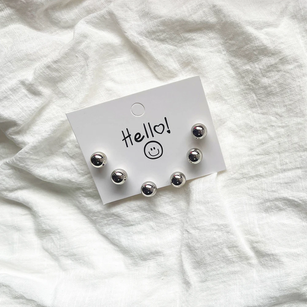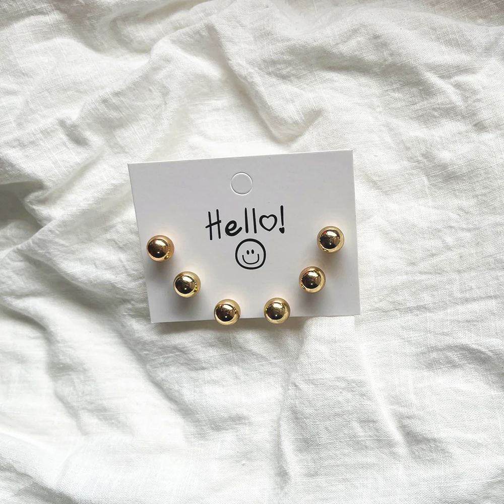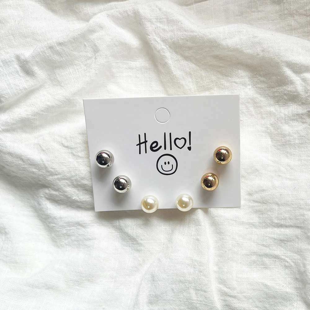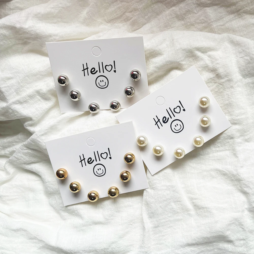 Trendy Cute Simple 3Pair/set 10mm Silver Gold Plated Bead Pearl Stud Earring Set For Women Girl Wedding Jewelry Accessory Gifts