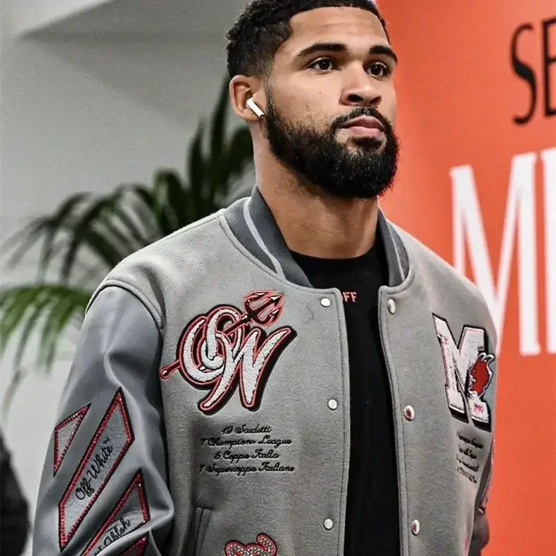 Trendy Europe and The United States New Men’s Bomber Jacket Hip-hop Letters Embroidery Splicing Leather Baseball Suit Y2K Jacket