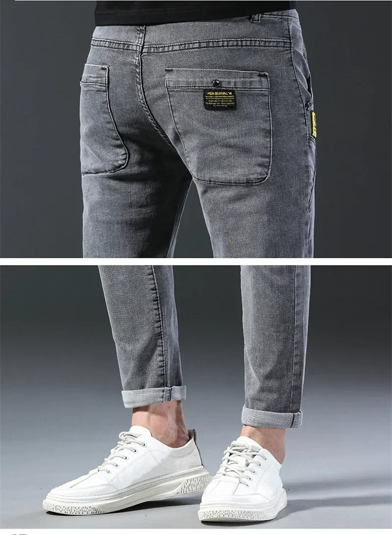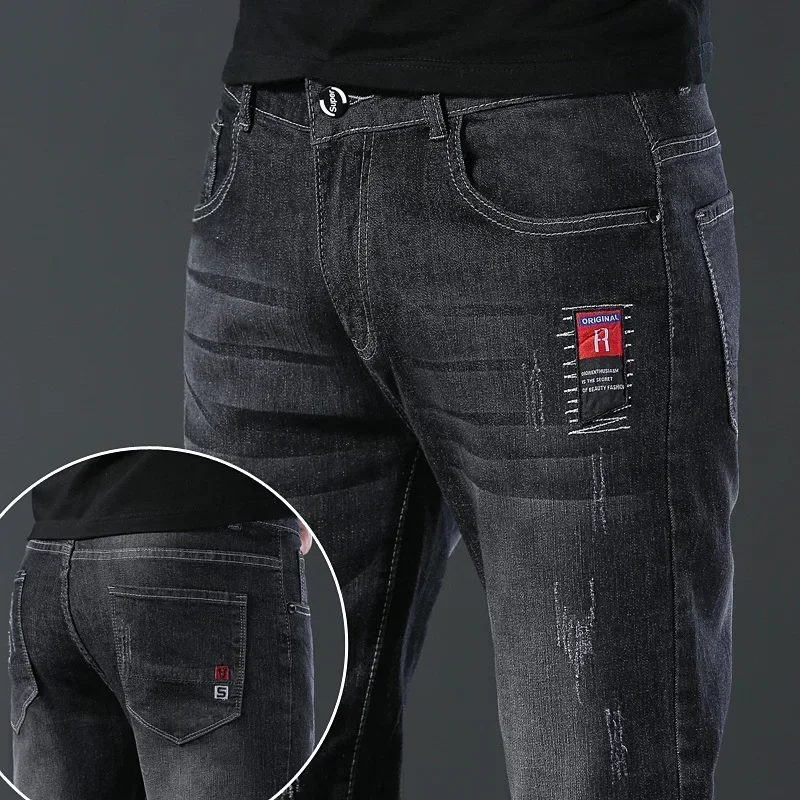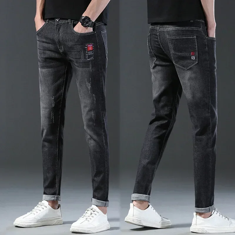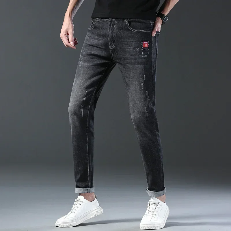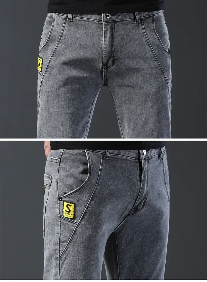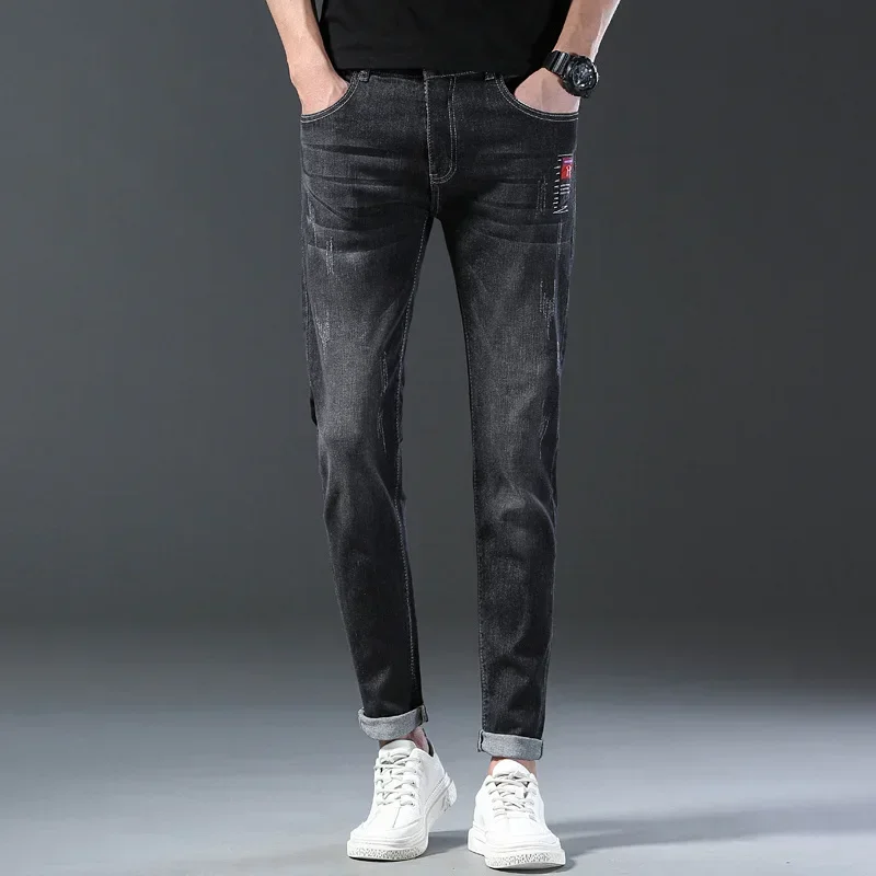 Trendy Men Retro Washed Snowflake Slim Fit Classic Jeans Male Casual Street Skateboarding Denim Pants Stretch Skinny Trousers