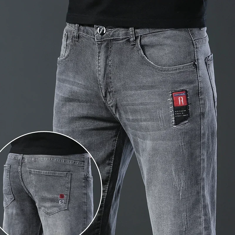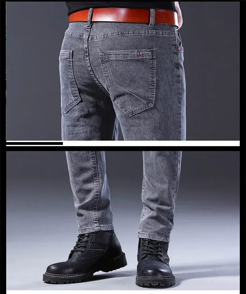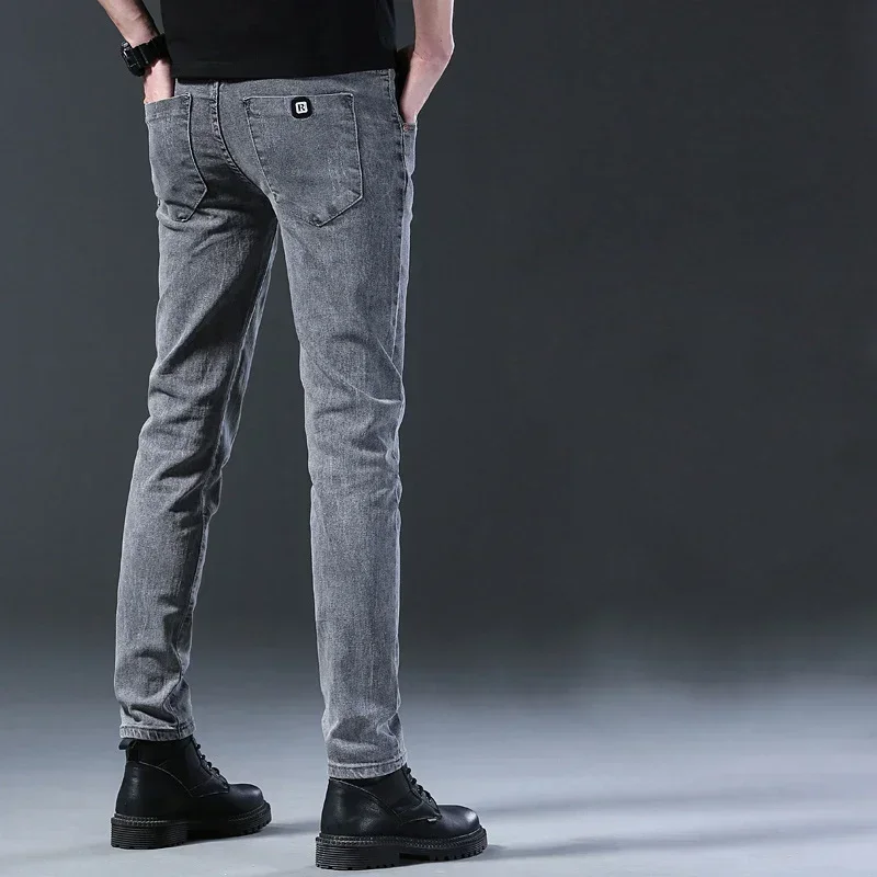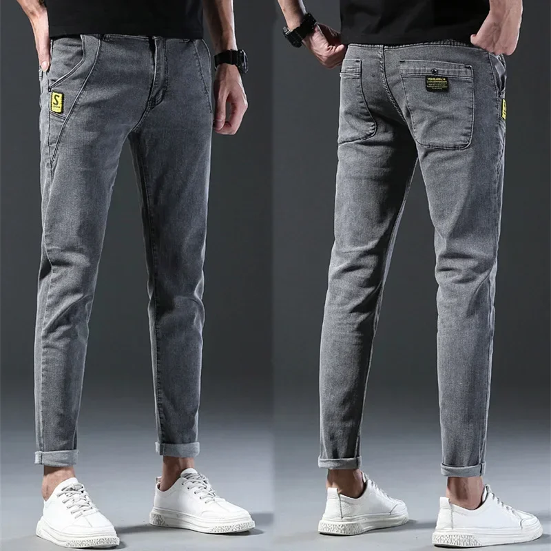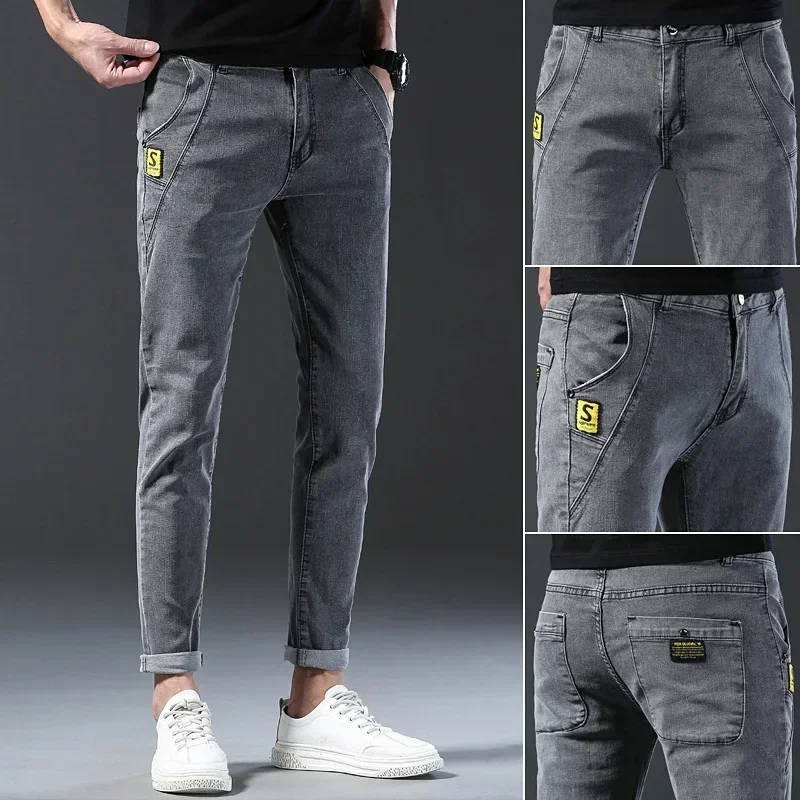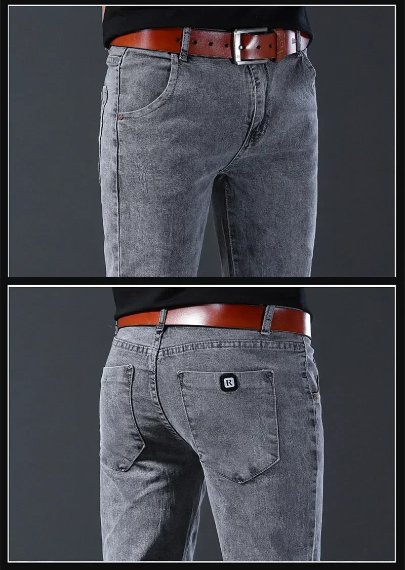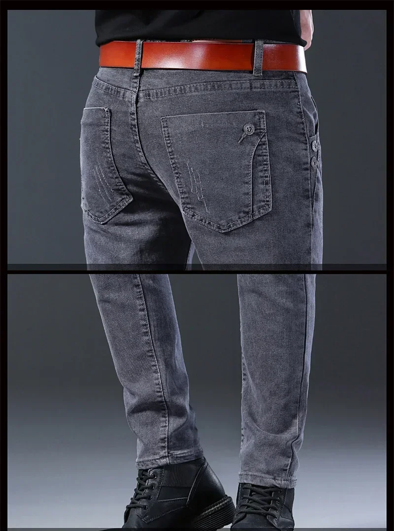 Trendy Men Retro Washed Snowflake Slim Fit Classic Jeans Male Casual Street Skateboarding Denim Pants Stretch Skinny Trousers