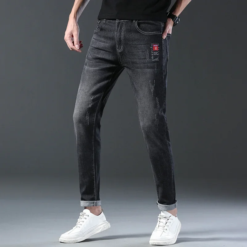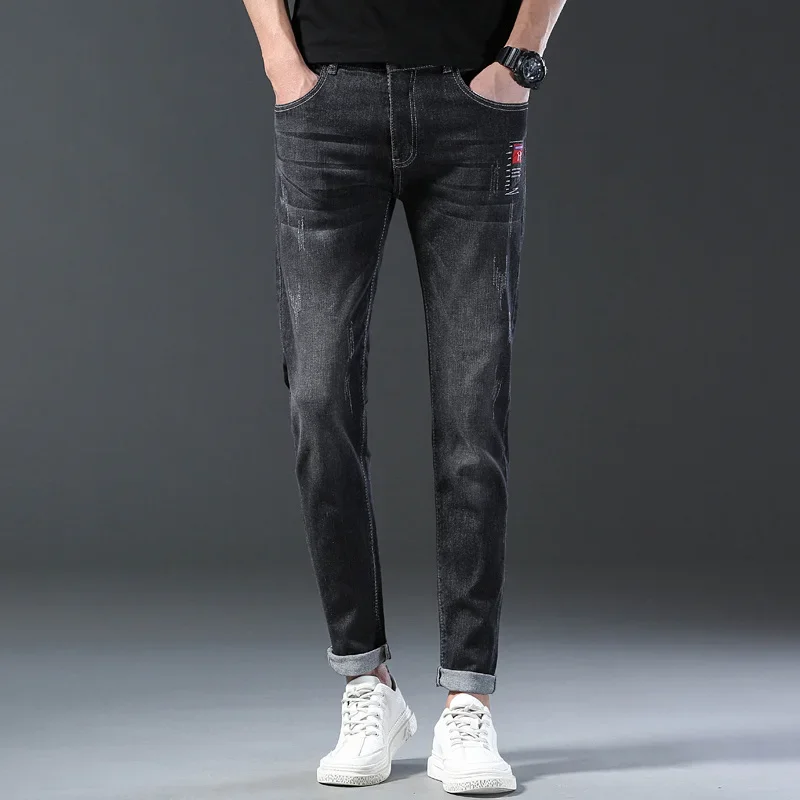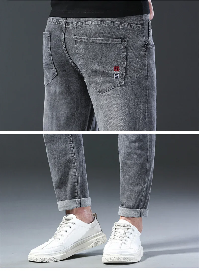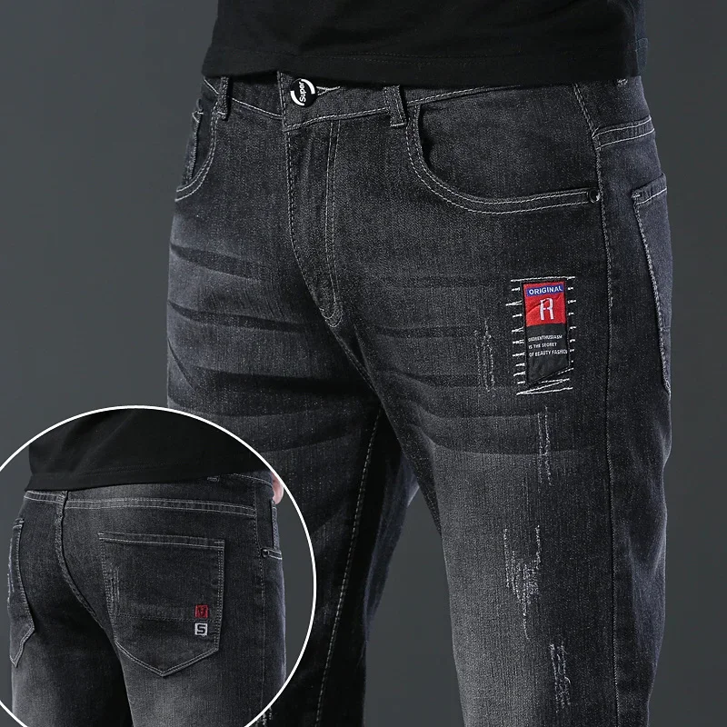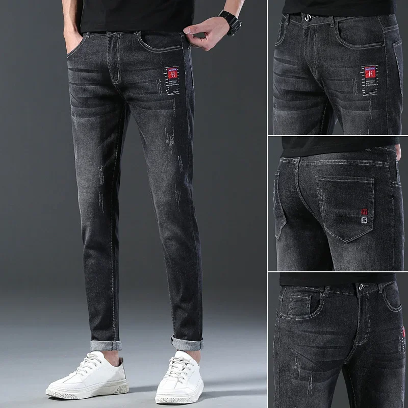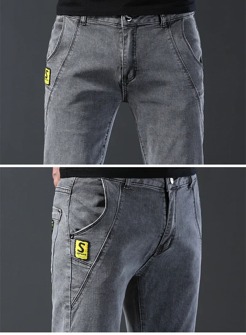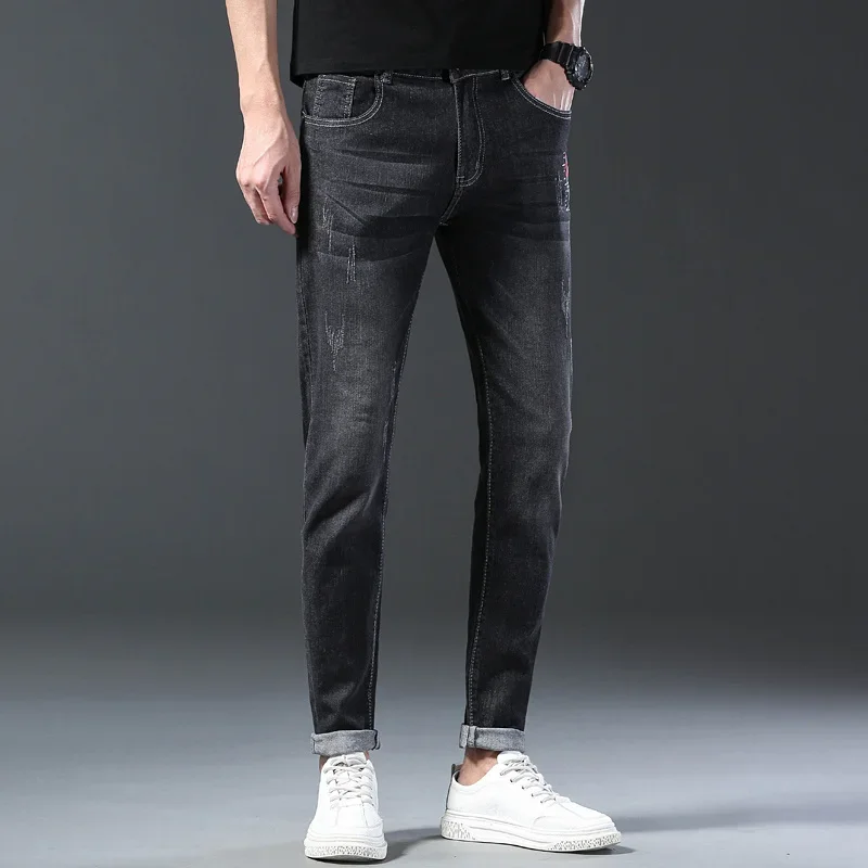 Trendy Men Stretch Skinny Jeans Retro Washed Snowflake Slim Fit Classic Trousers Male Casual Street Skateboarding Denim Pants