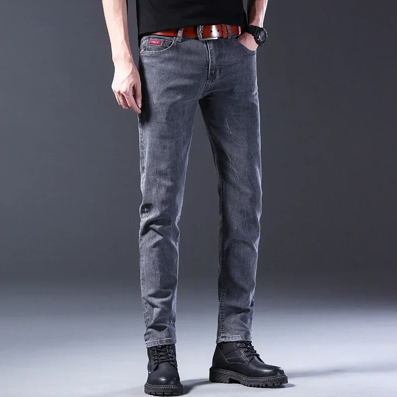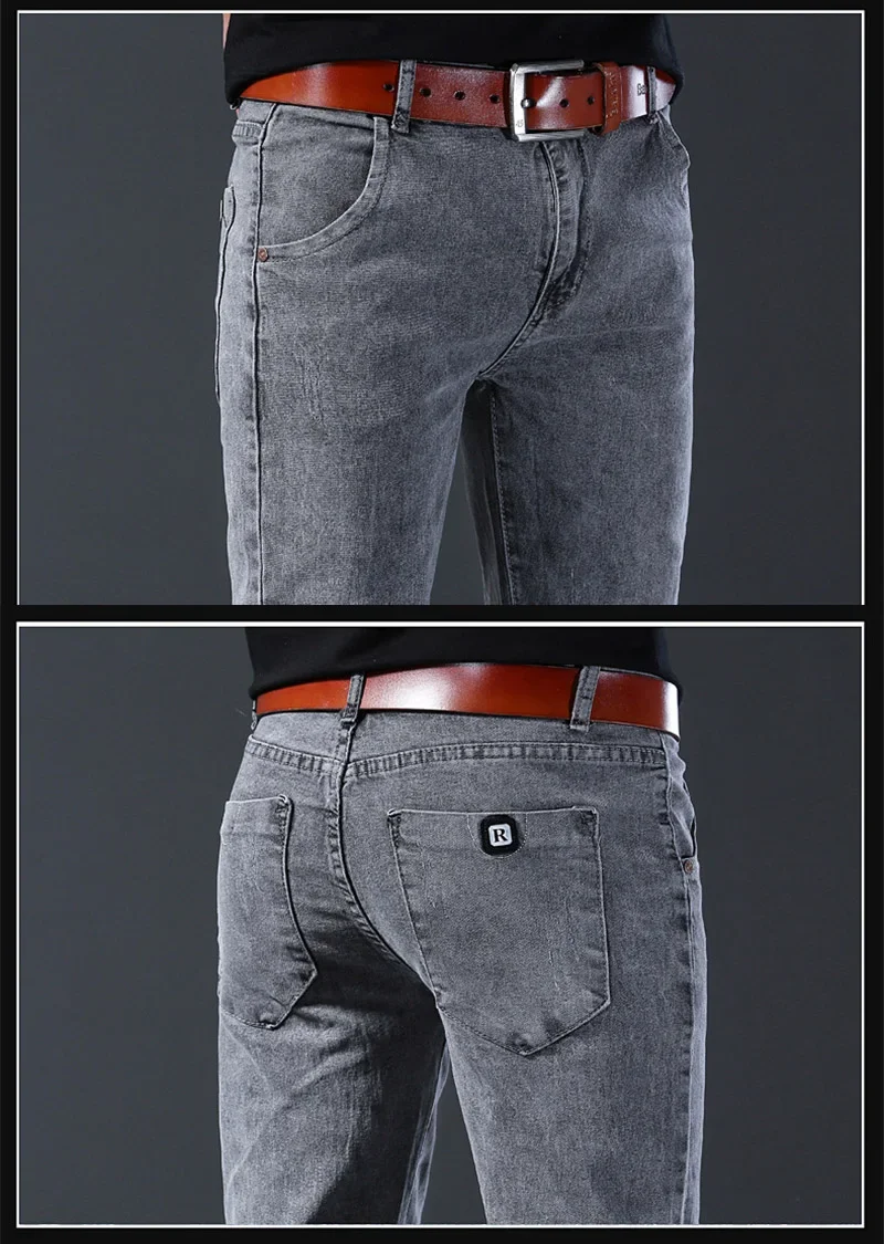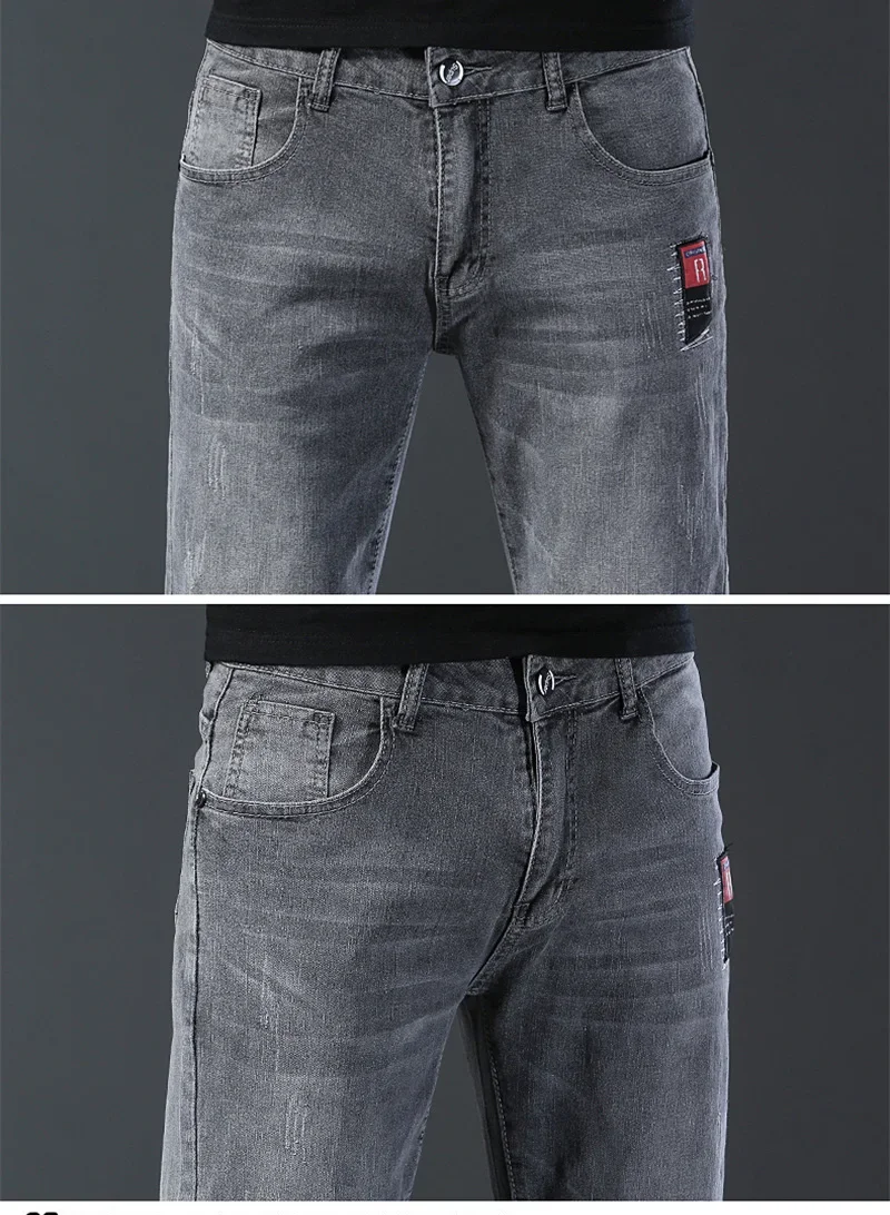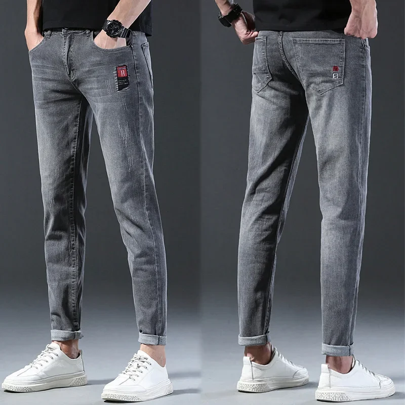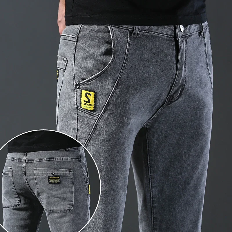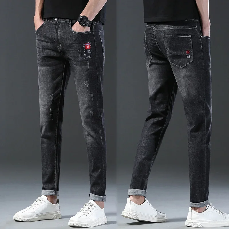 Trendy Men Stretch Skinny Jeans Retro Washed Snowflake Slim Fit Classic Trousers Male Casual Street Skateboarding Denim Pants