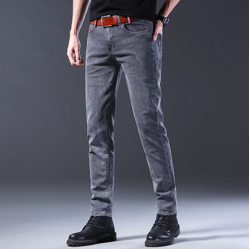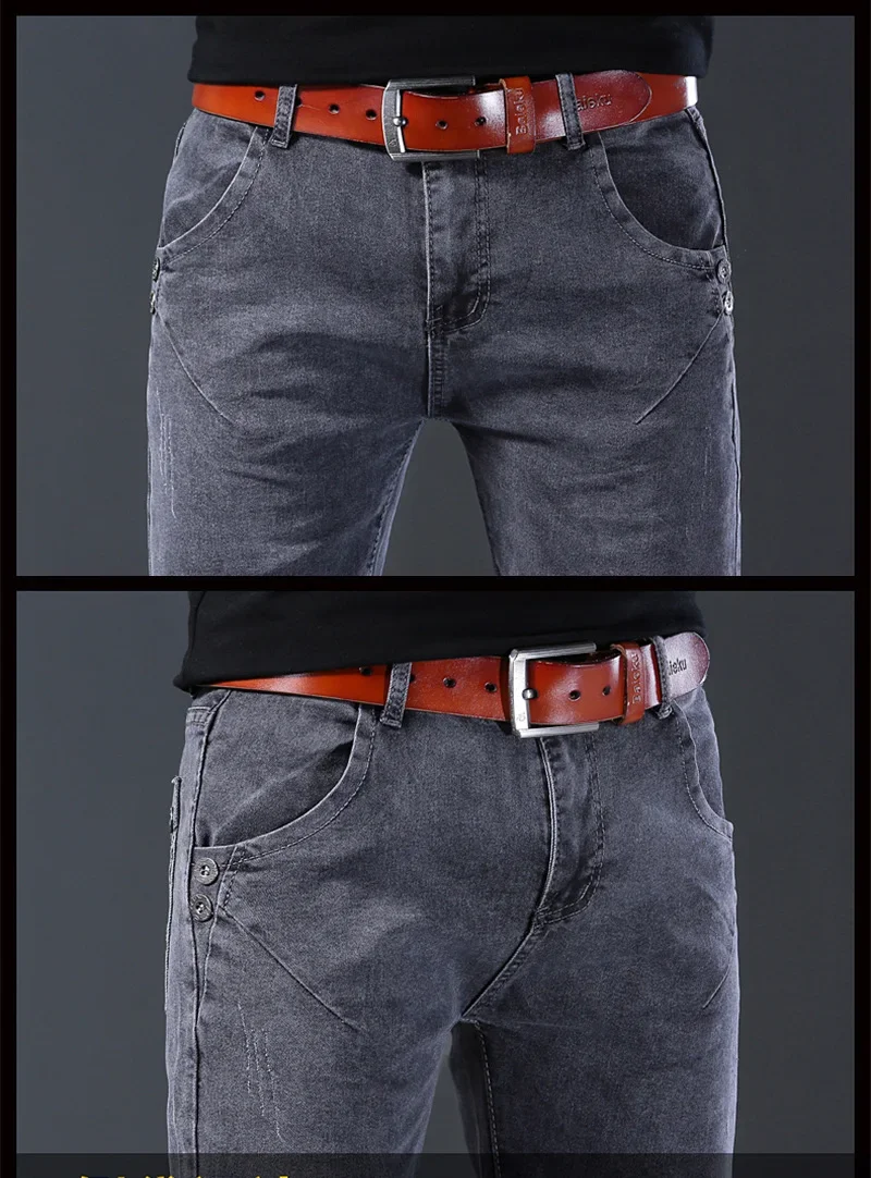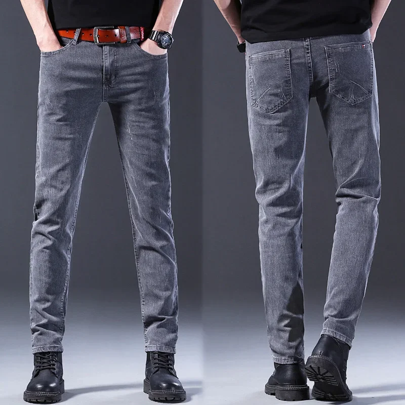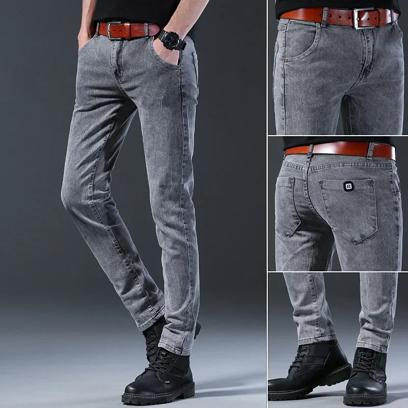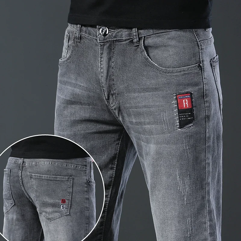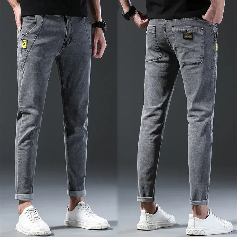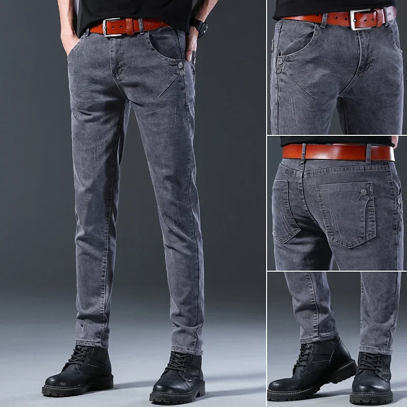 Trendy Men Stretch Skinny Jeans Retro Washed Snowflake Slim Fit Classic Trousers Male Casual Street Skateboarding Denim Pants