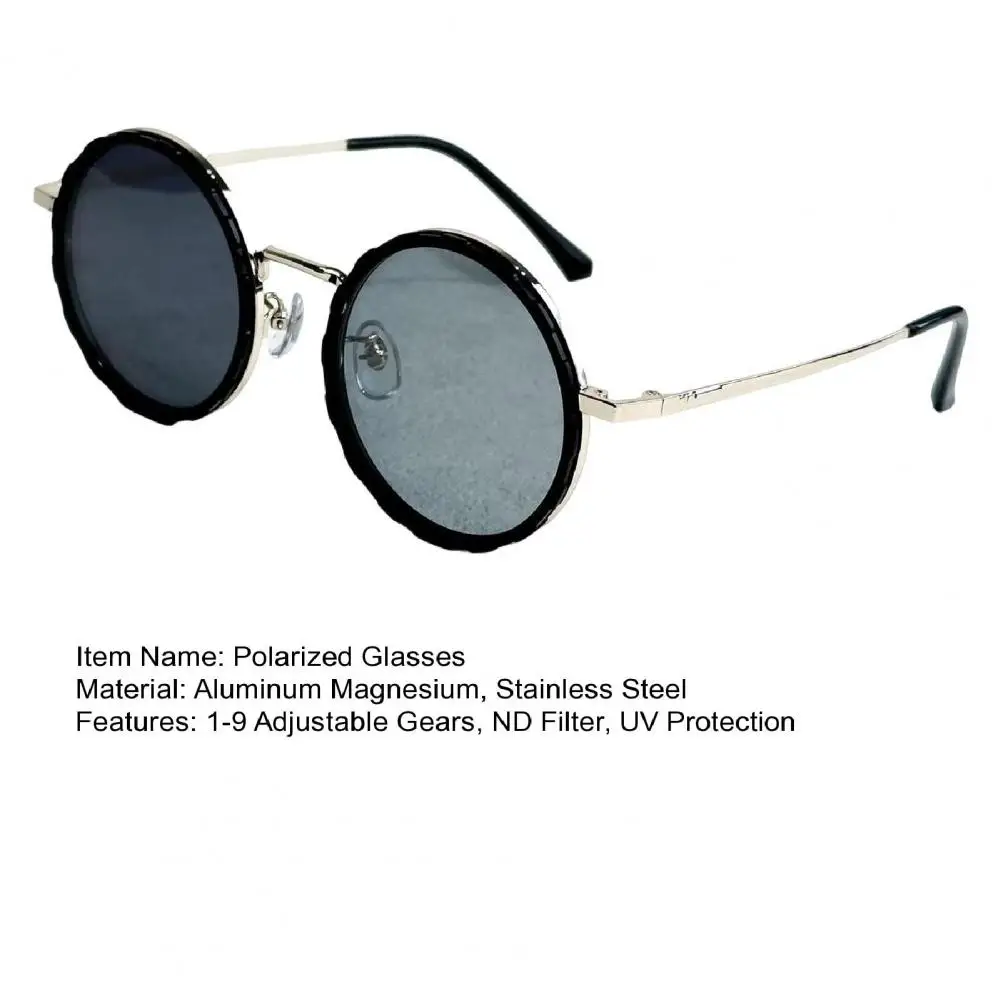 Trendy Round Frame Glasses Polarized Round Sunglasses Adjustable Tint Polarized Sunglasses with Nd Filter for Men for Outdoor