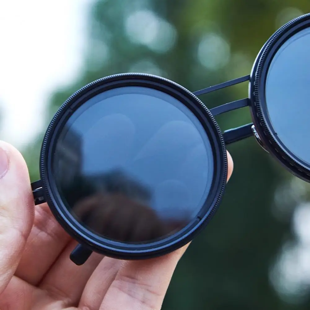 Stylish round polarized glasses with adjustable nd filter.