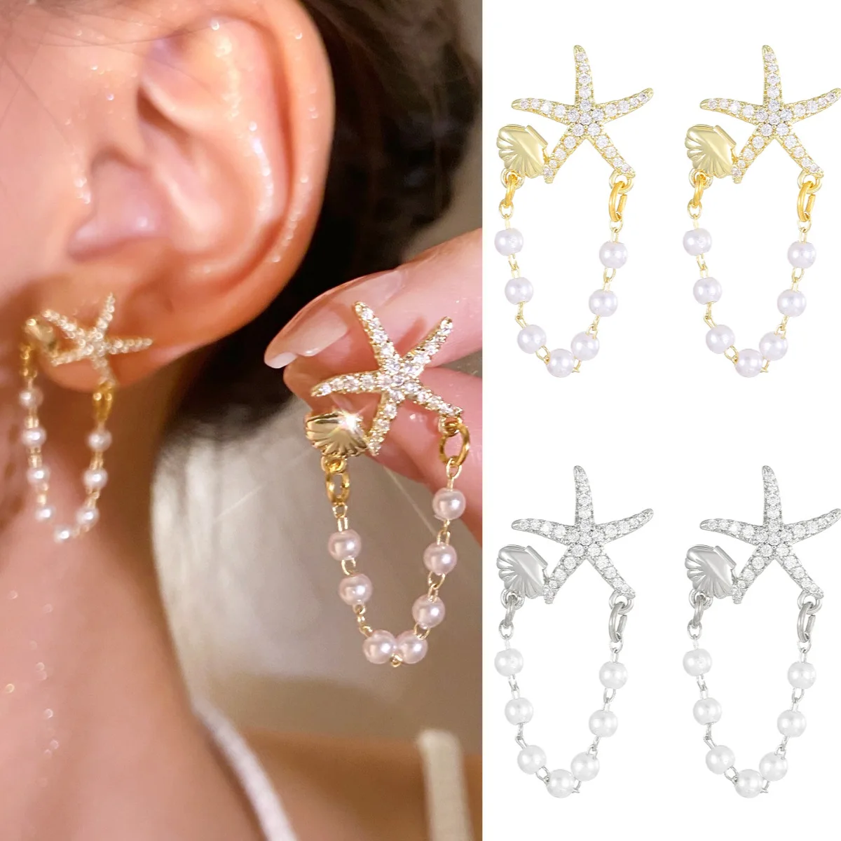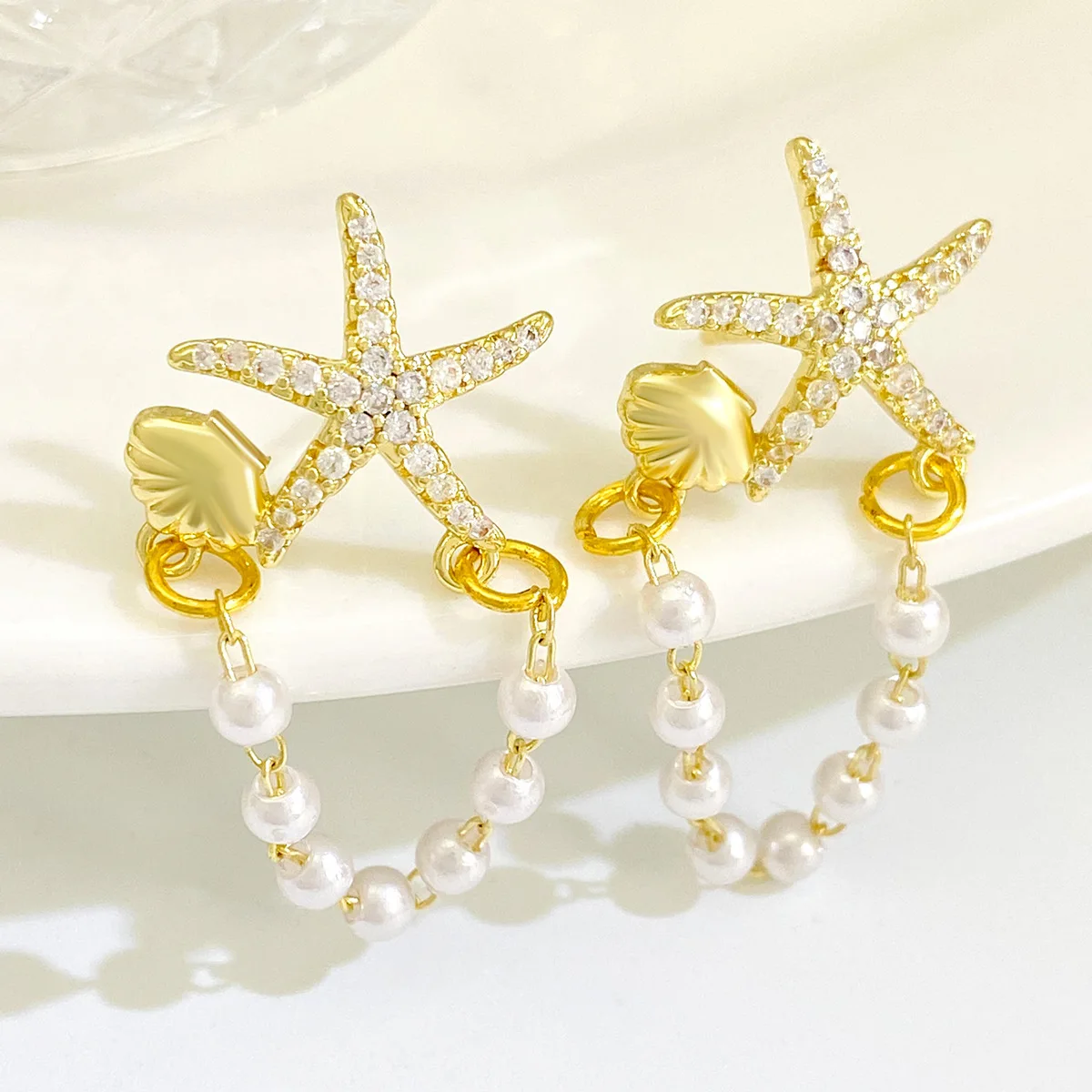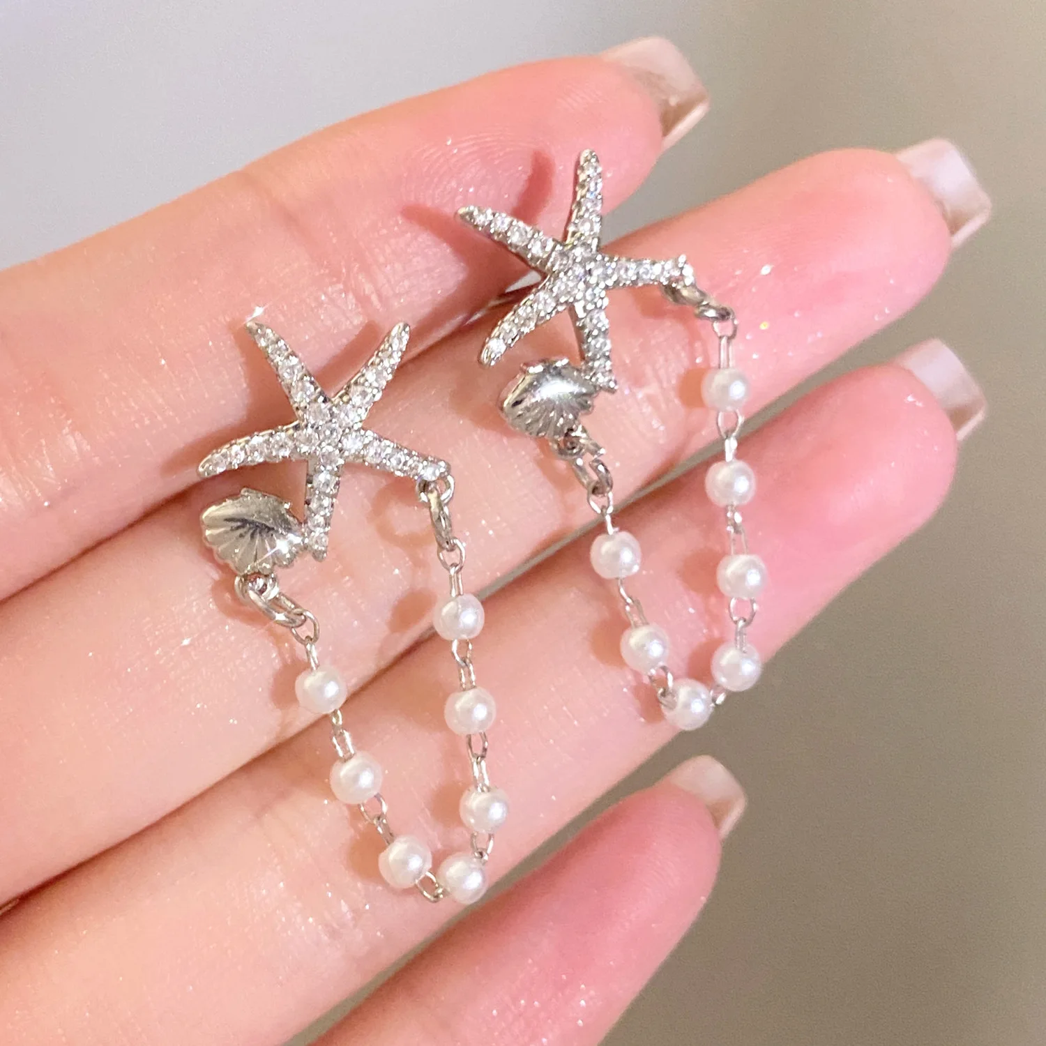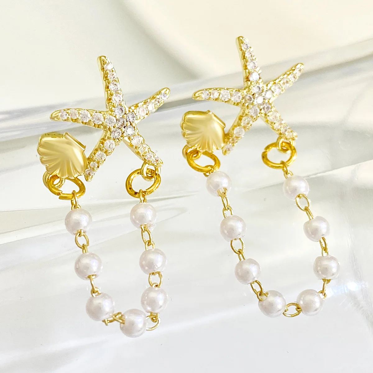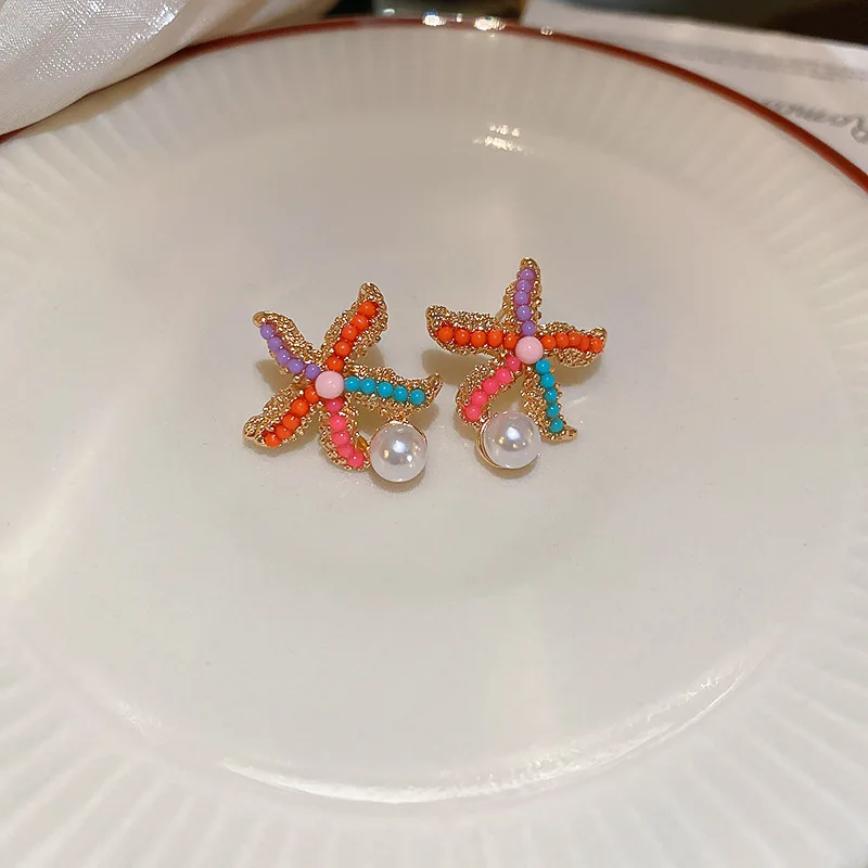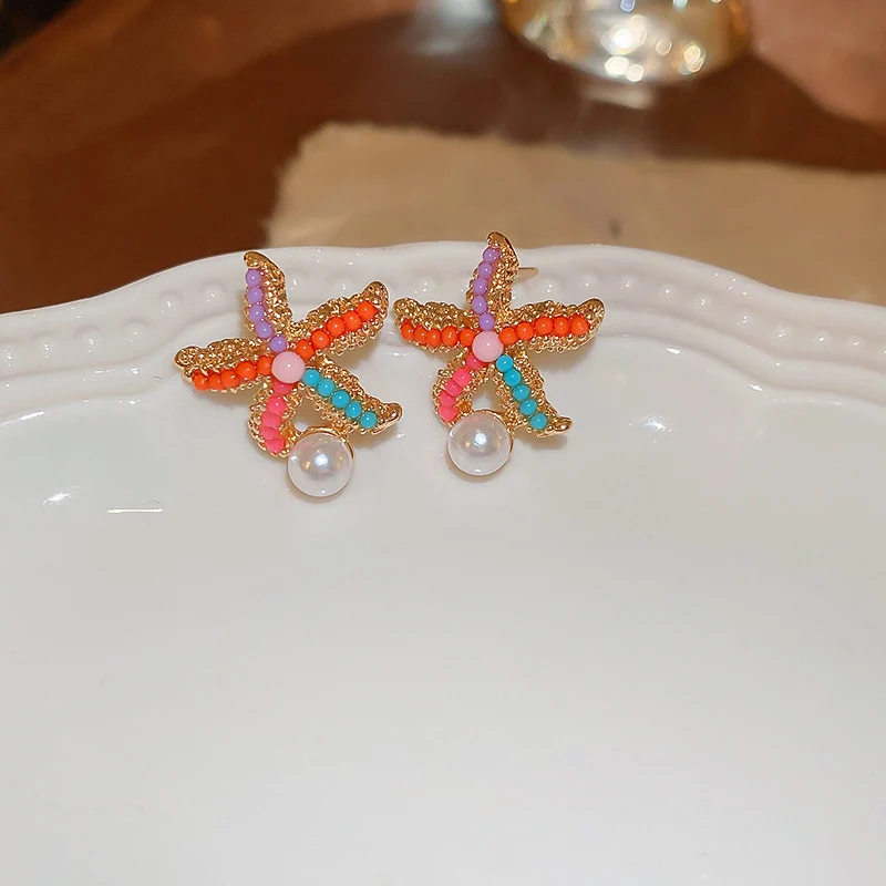 Trendy Shell Imitation Pearl Tassel Earrings for Women Unique Colorful Starfish Stud Earrings Summer Beach Bohemia Jewelry