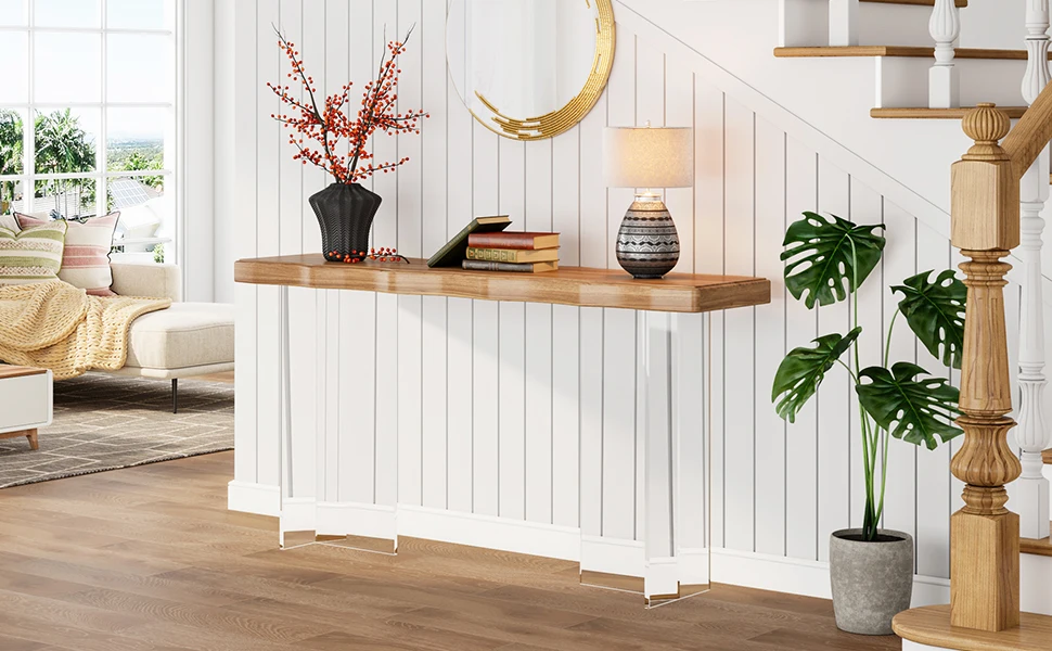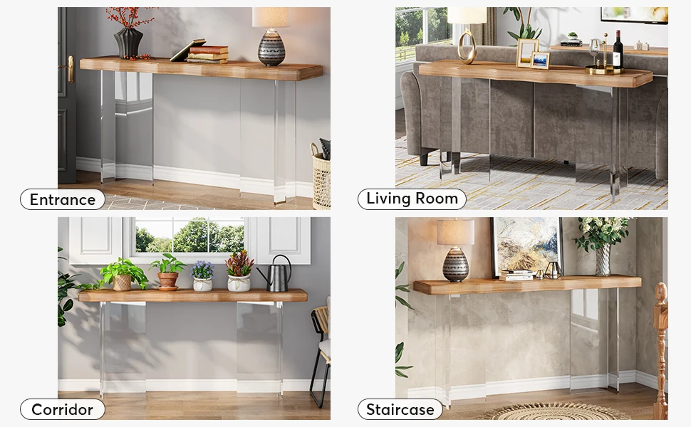 Superior Craftsmanship: Built with a 1.97 inches thick engineered wood table board and robust acrylic legs, and the narrow sofa table is further enhanced by transparent acrylic legs that lend a floating effect to the structure,our console table assures long lasting durability and stability, withstanding the test of time.