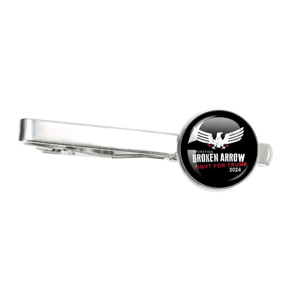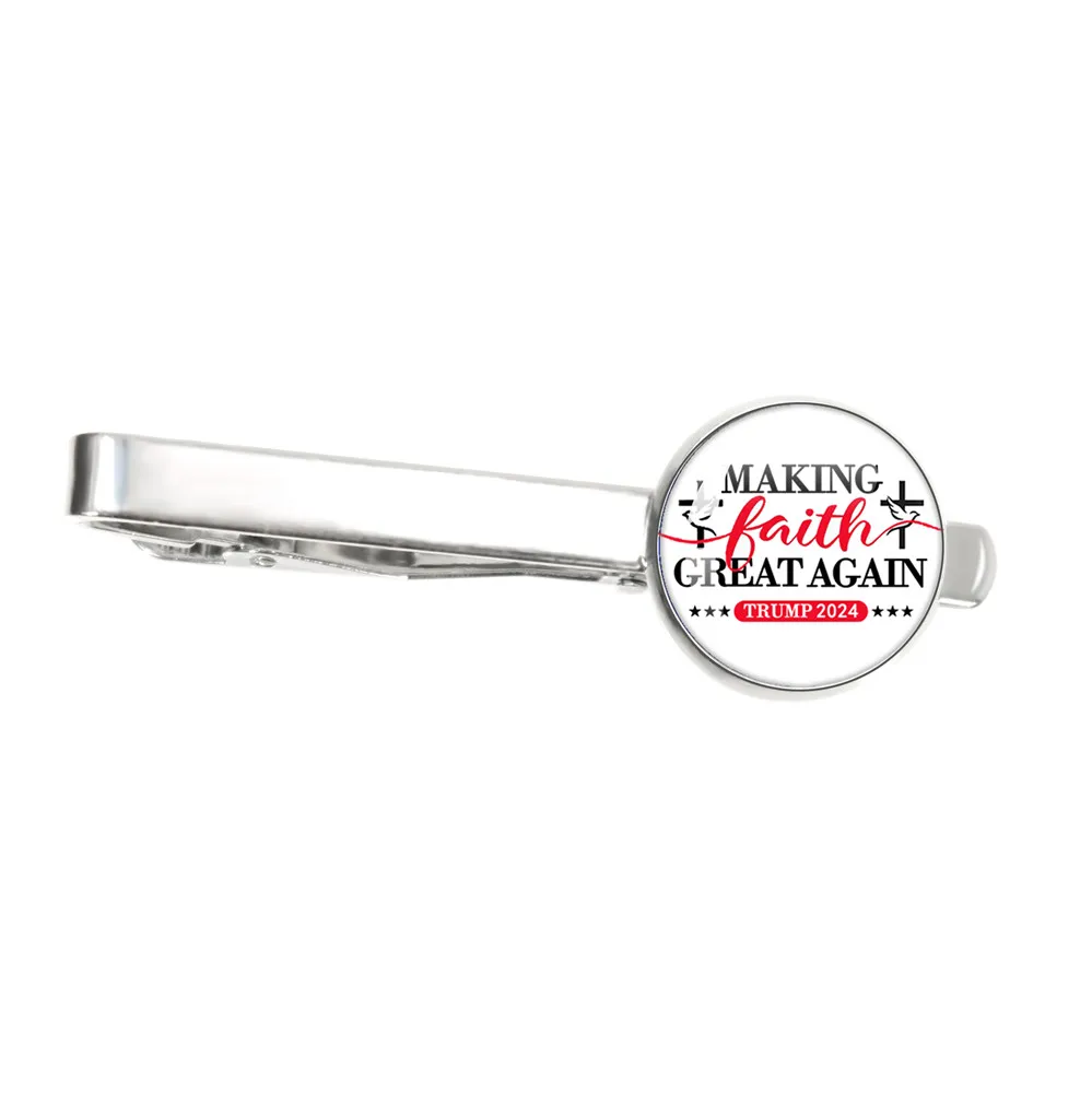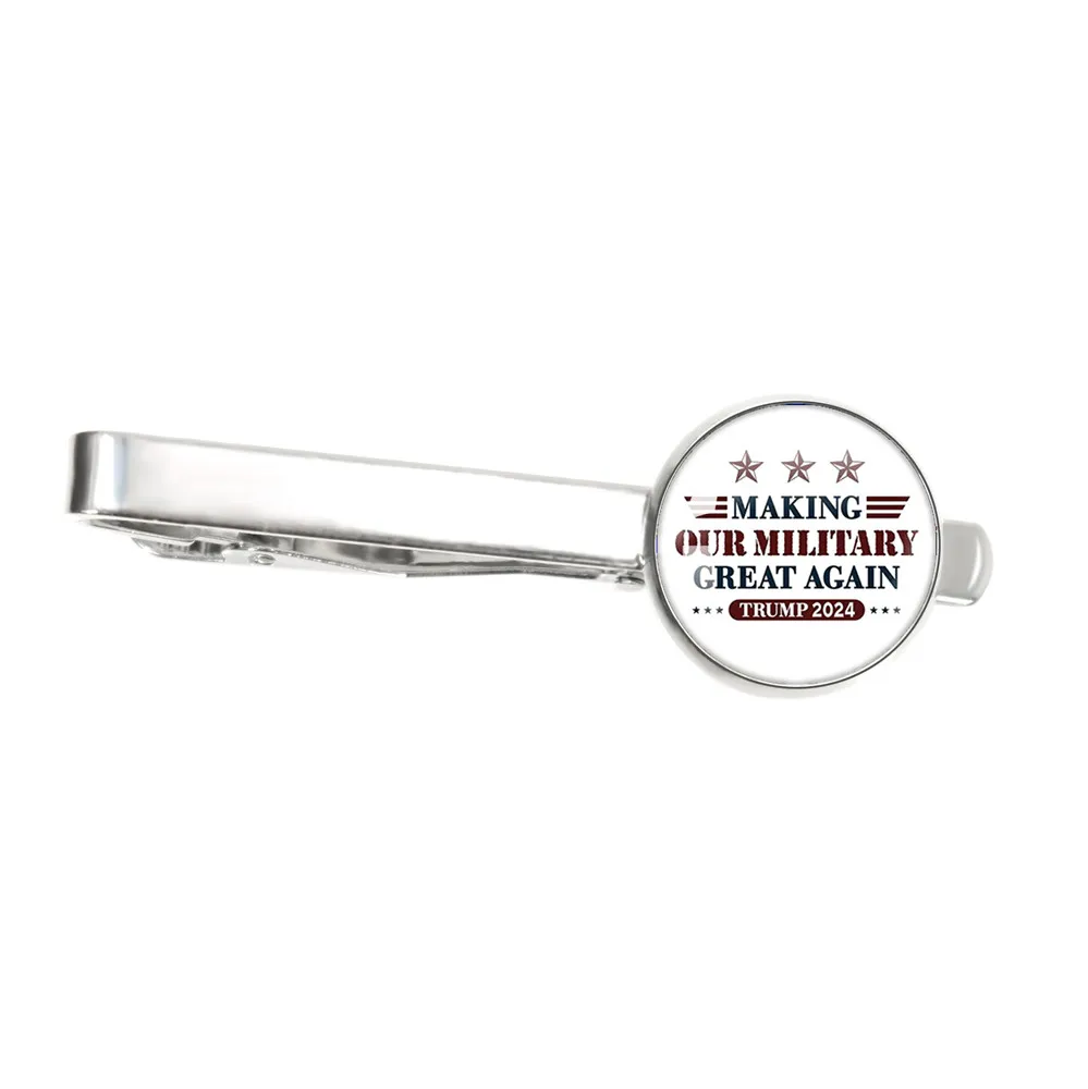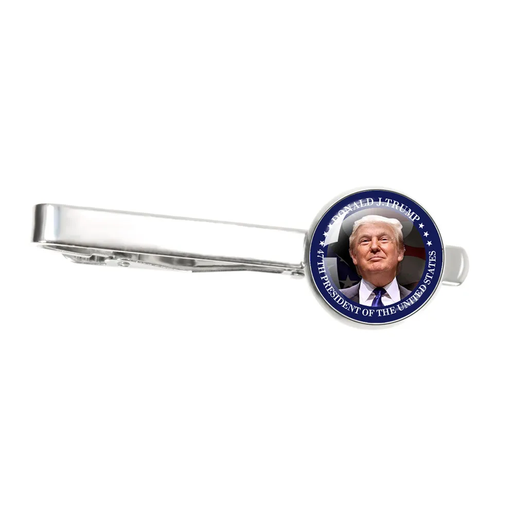 Trump 2024 Flag Tie Clips Save America Again Creative Pattern Glass Cabochon Tie Clips Men Shirt Jewelry Gift