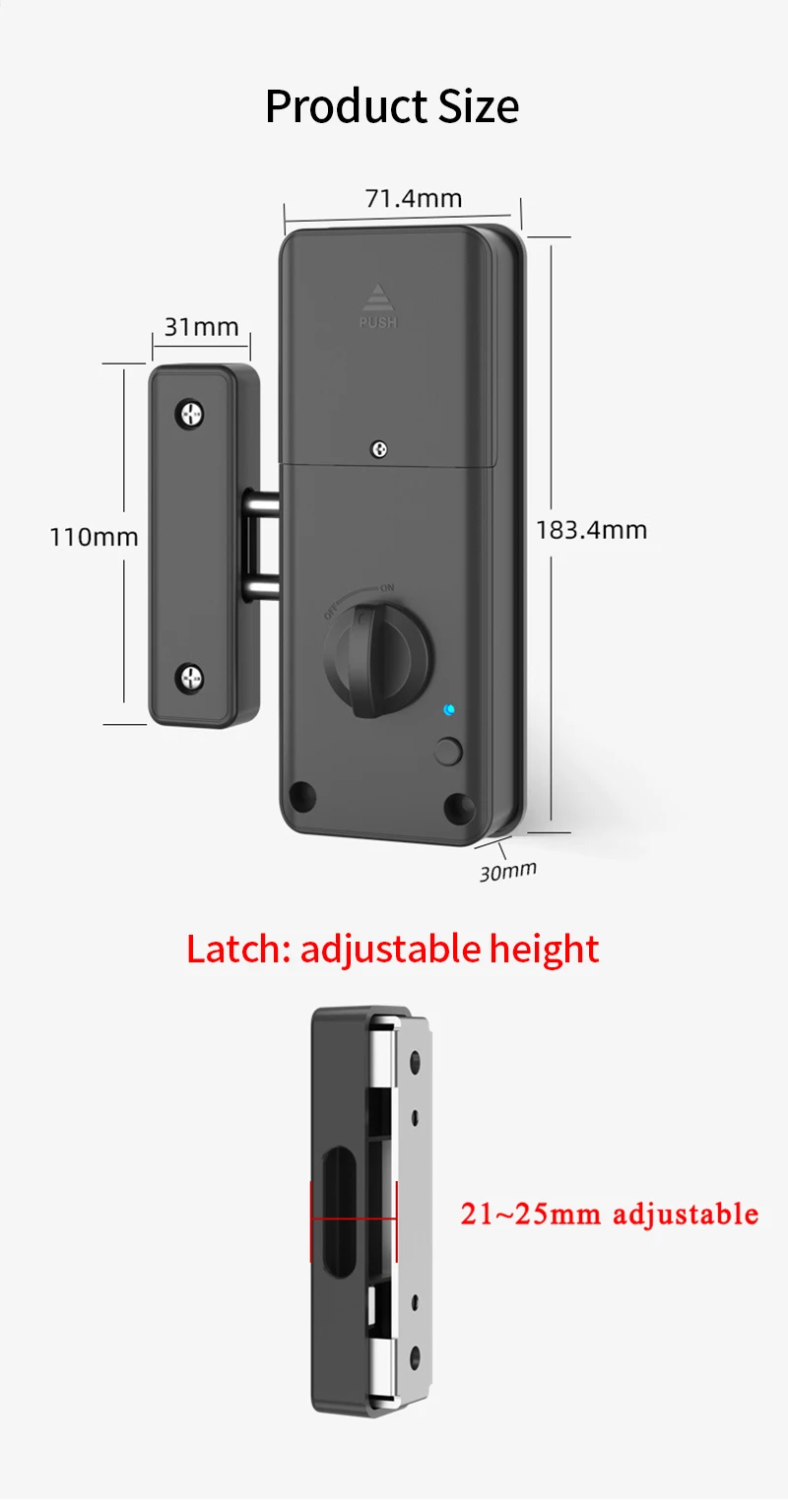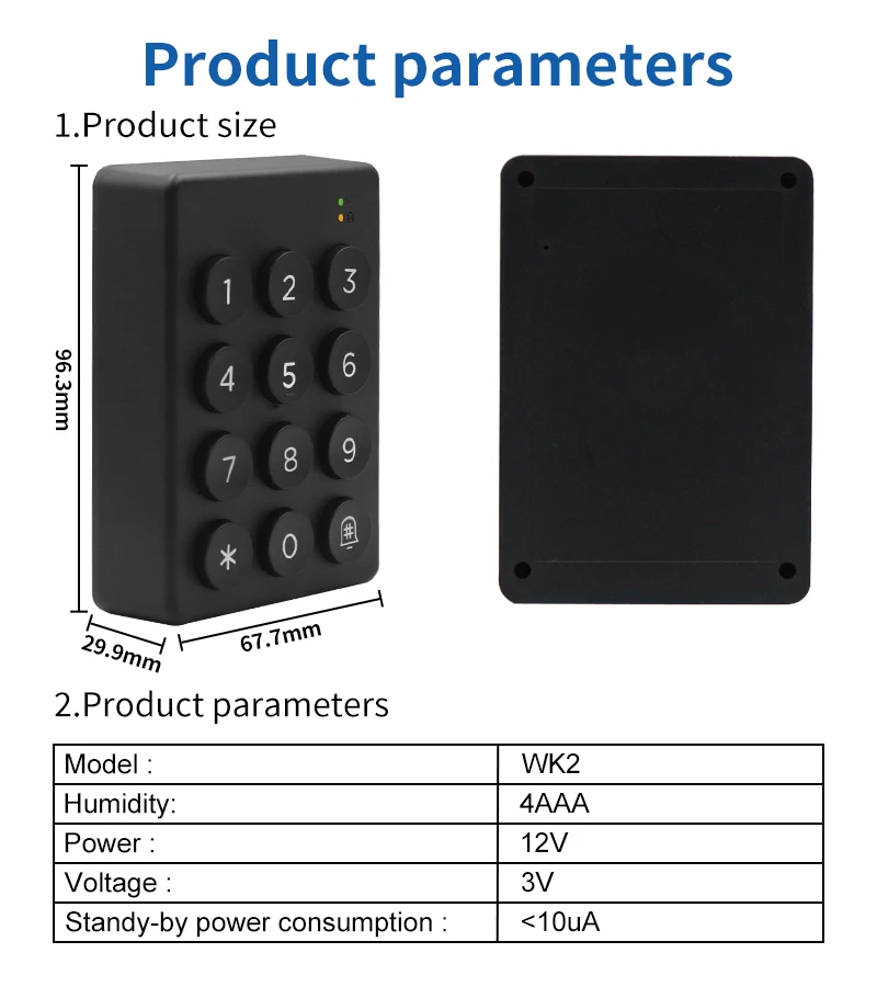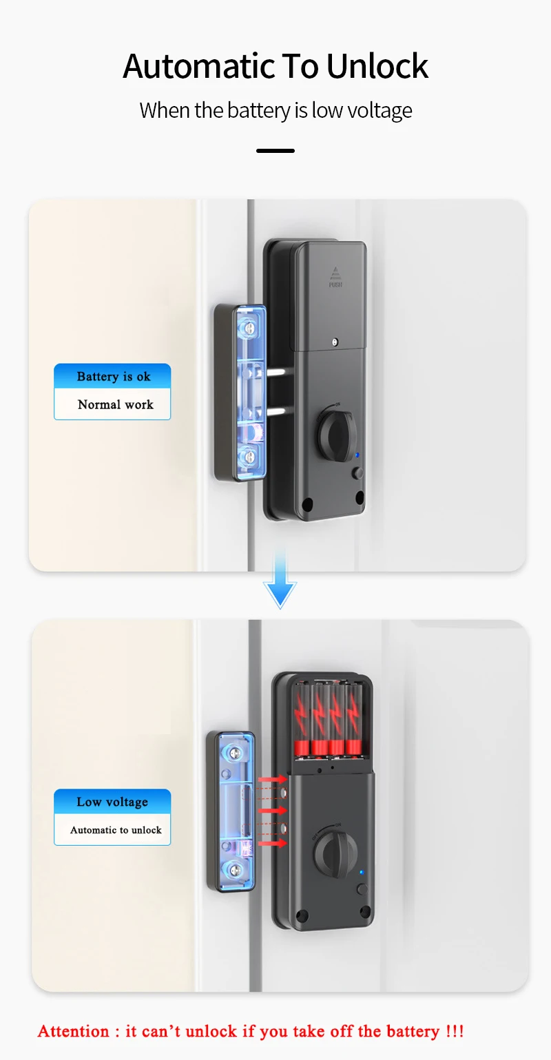 Power supply method: 4 * AA dry battery(not included), battery life of one year, low battery reminder for battery replacement and automatic latch release