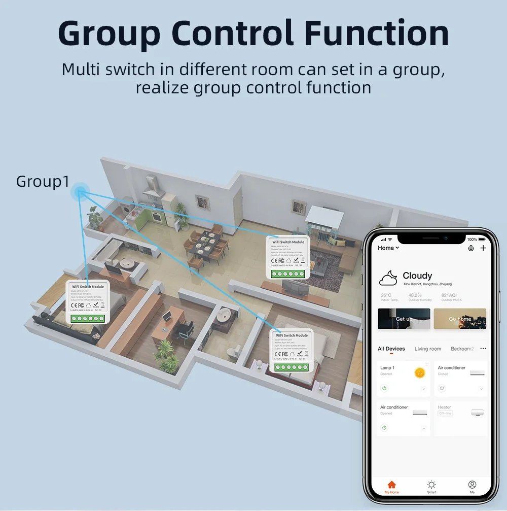 Download smart life /Tuya smart APP on your phone&Tablet to control the light switch anywhere/anytime.