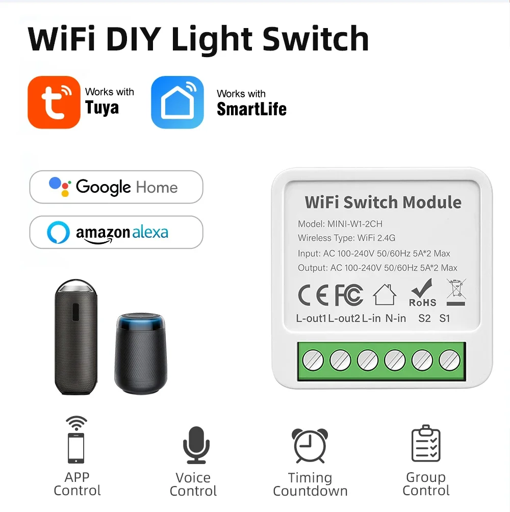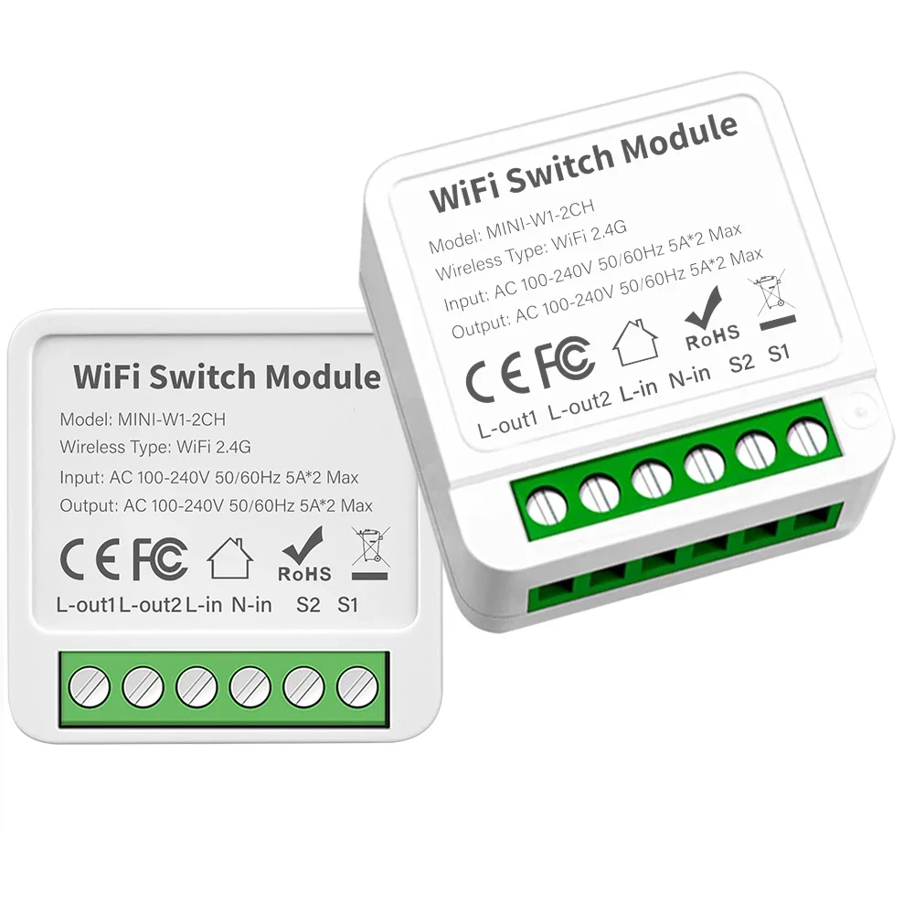 Tuya Mini Wifi Switch Relay 1/2/3/4 Channel 2-way Control Light Switch Automation Module Work With Alexa Google Alice Smart Life
