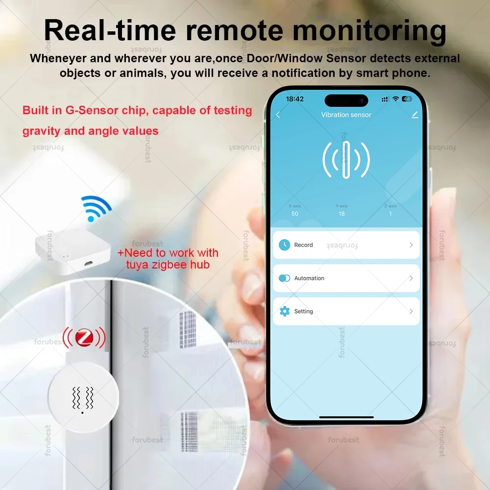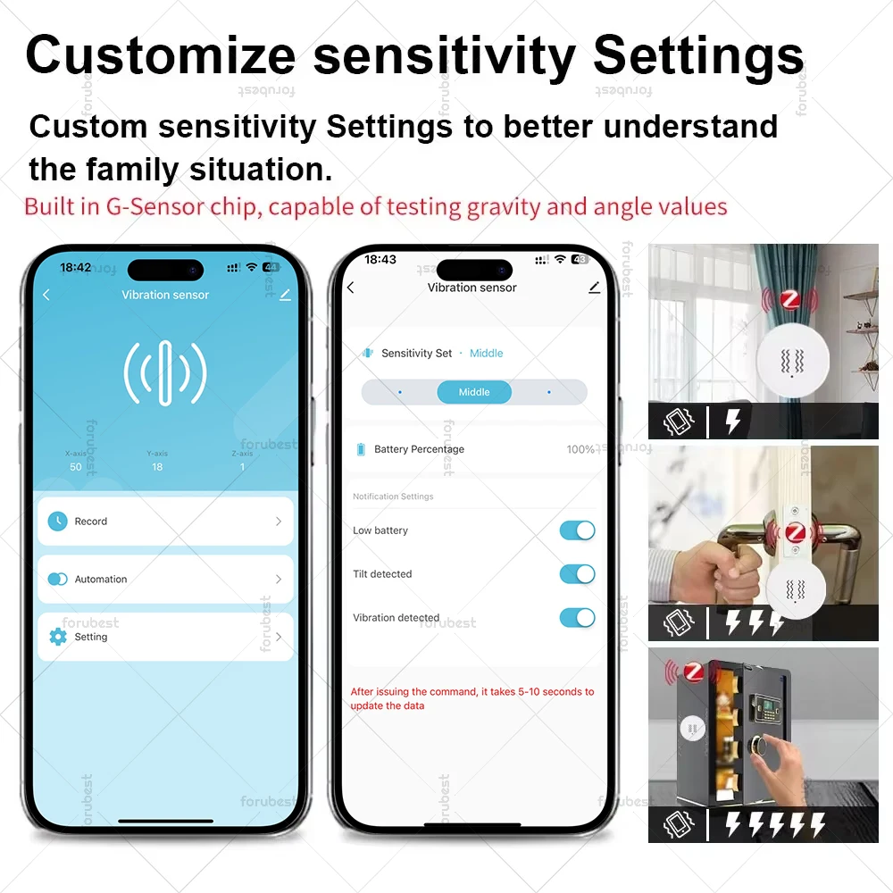 【Real-time Remote Monitoring】No matter when and where, once the vibration sensor detects vibration or movement, you will receive a push notification from your smartphone in the Tuya Smart Life App as real-time monitoring.