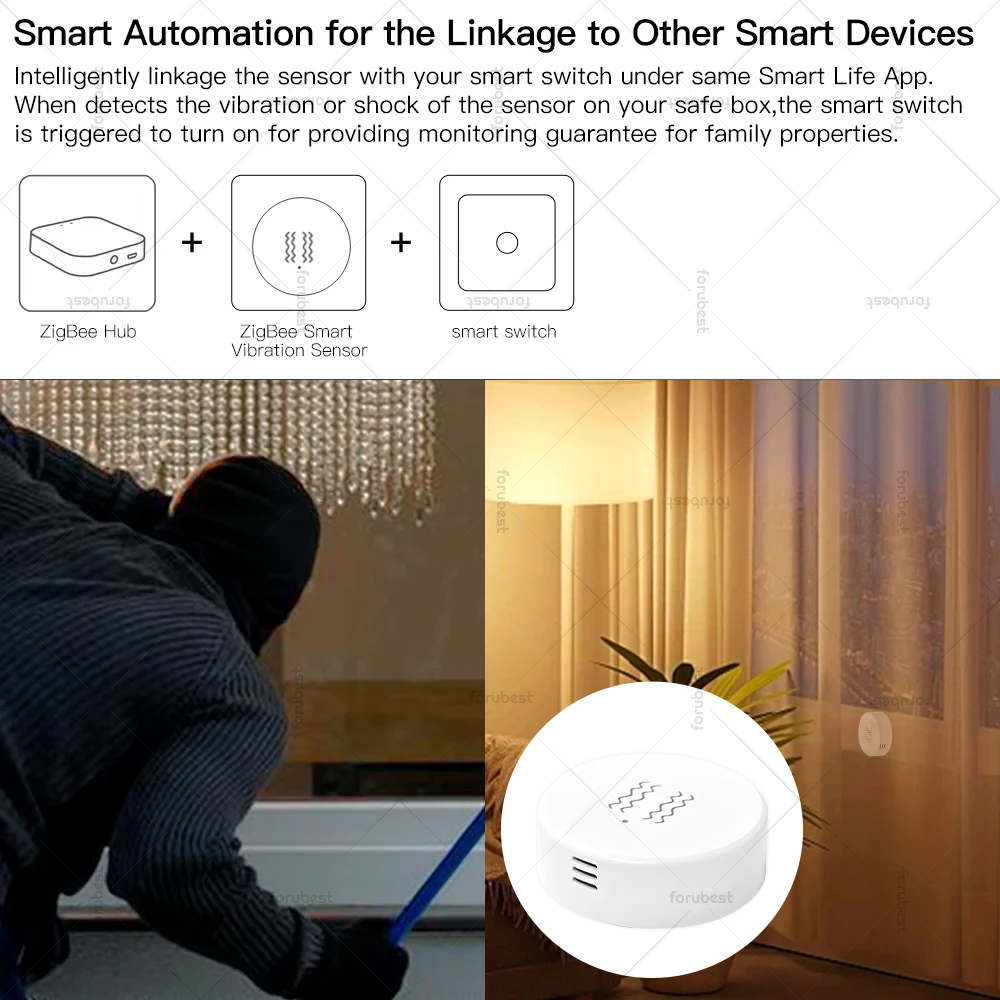 【Smart Linkage】The vibration sensor can be used in conjunction with other Tuya products to achieve smart linkage for the whole house (smart scenes need to be created)