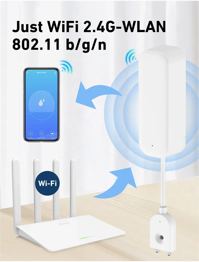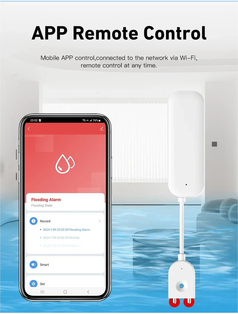 Mobile APP control, connected to the network via Wi-Fi/3G/4G/5G, Remote control at any time. After the sensor detects the leak, it immediately pushes a message to your mobile APP.