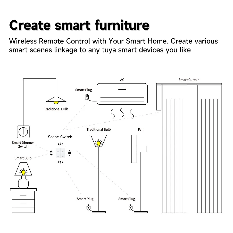 Tuya Zigbee Smart Scene Switch Button 4 Gang Wireless Switch Push Button Controller Smart Home Automation Scenario Switch