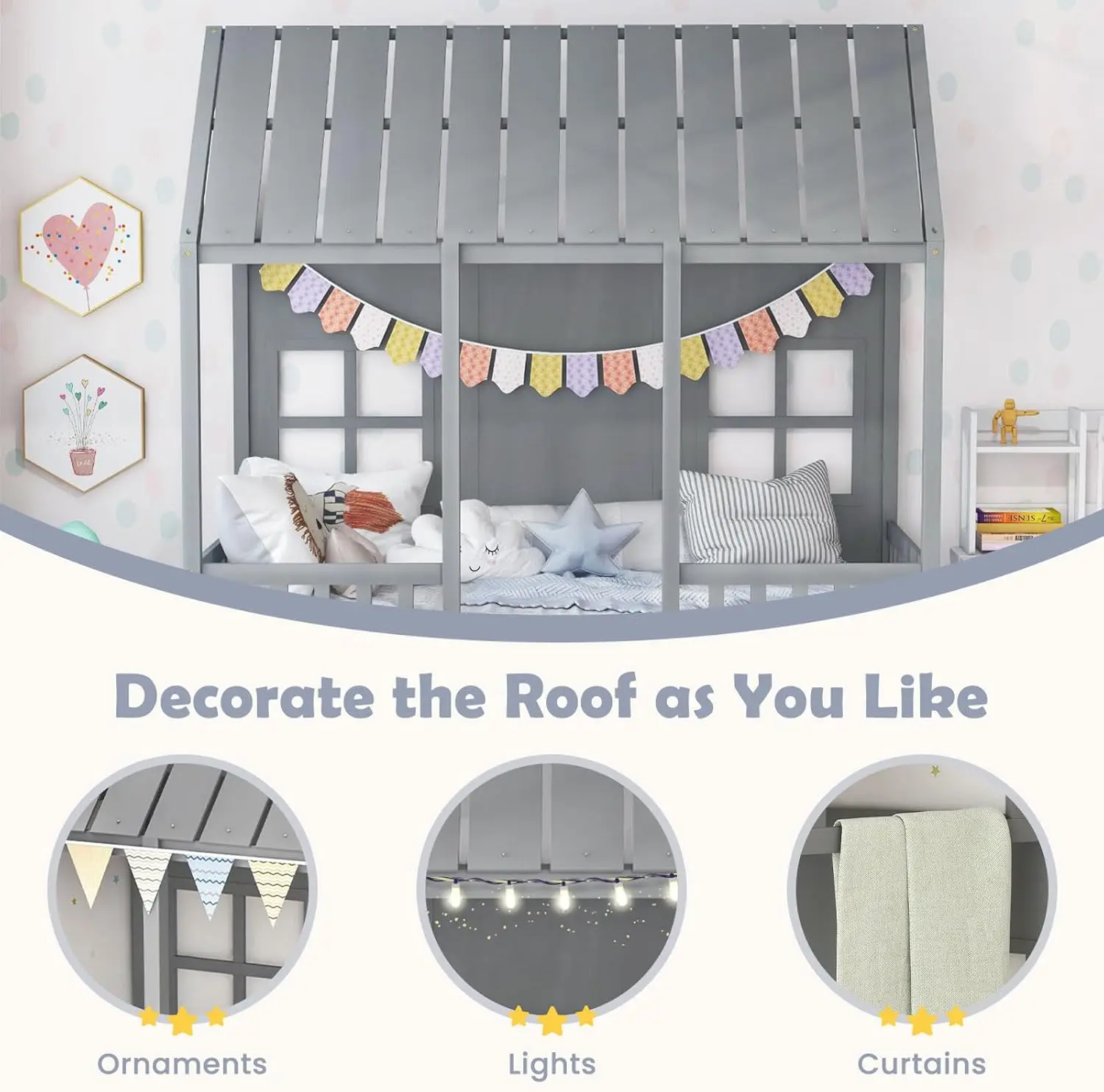 [Versatile Functionality]: The house bed with trundle is not only a comfortable sleeping solution but also a creative play area. Your child will love using it as a fort, a reading nook, or a space to let their imagination run wild. It’s also free to decorate the roof with ornaments, lights or curtains.