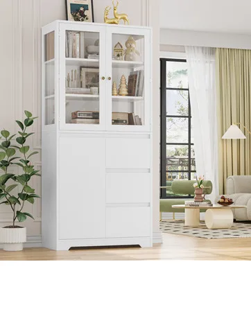 Display cabinet for the living room, bookcase for the study room, and 71″ pantry cabinet for the kitchen