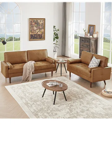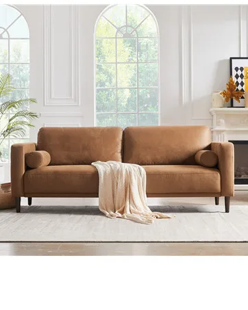 With classic brown faux leather upholstery, the sofa brings a touch of timeless elegance