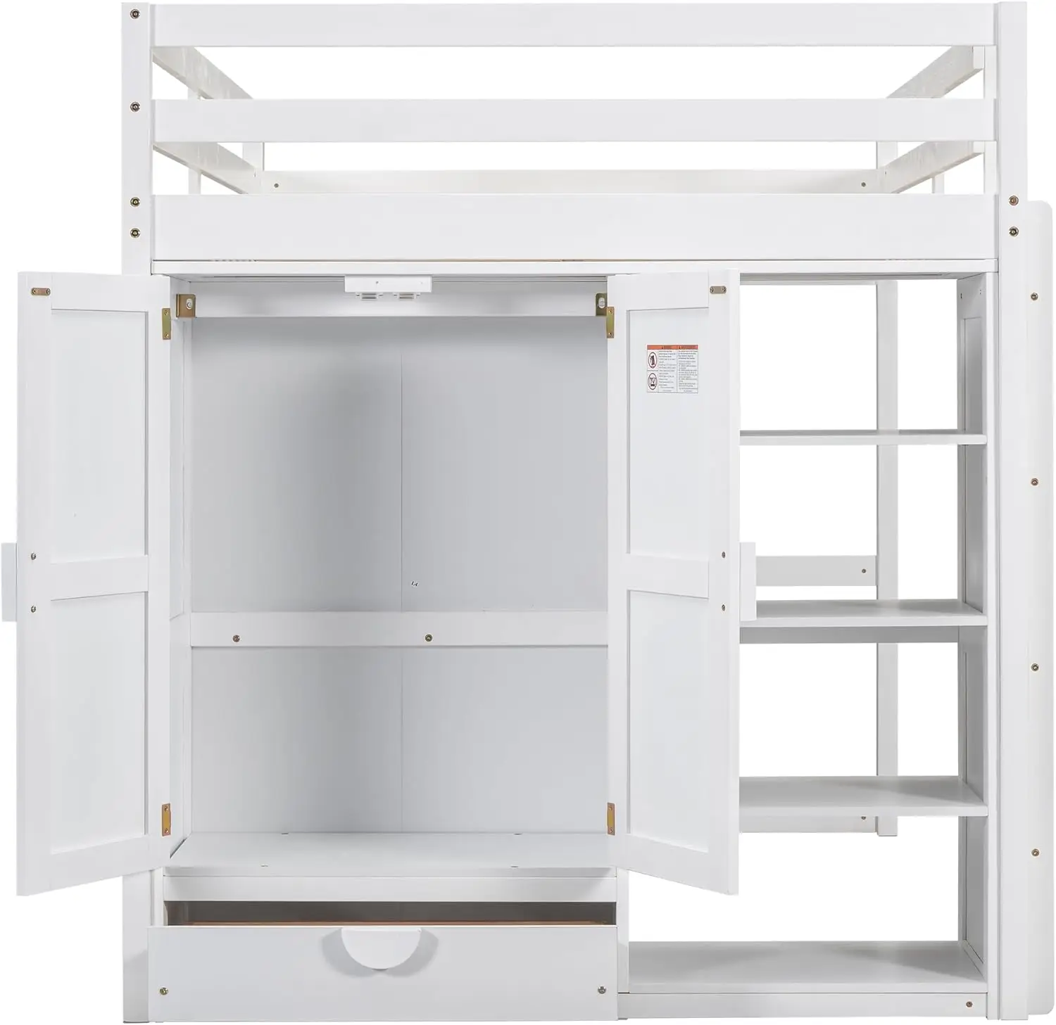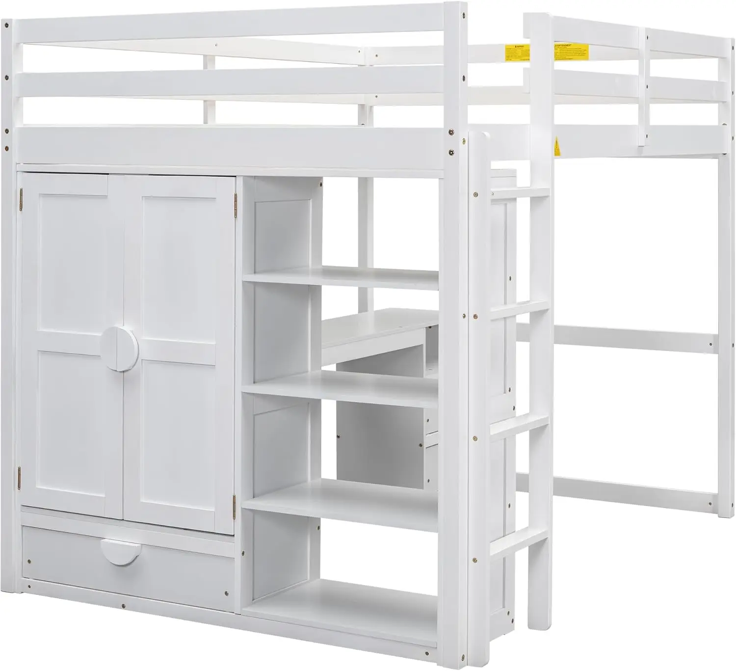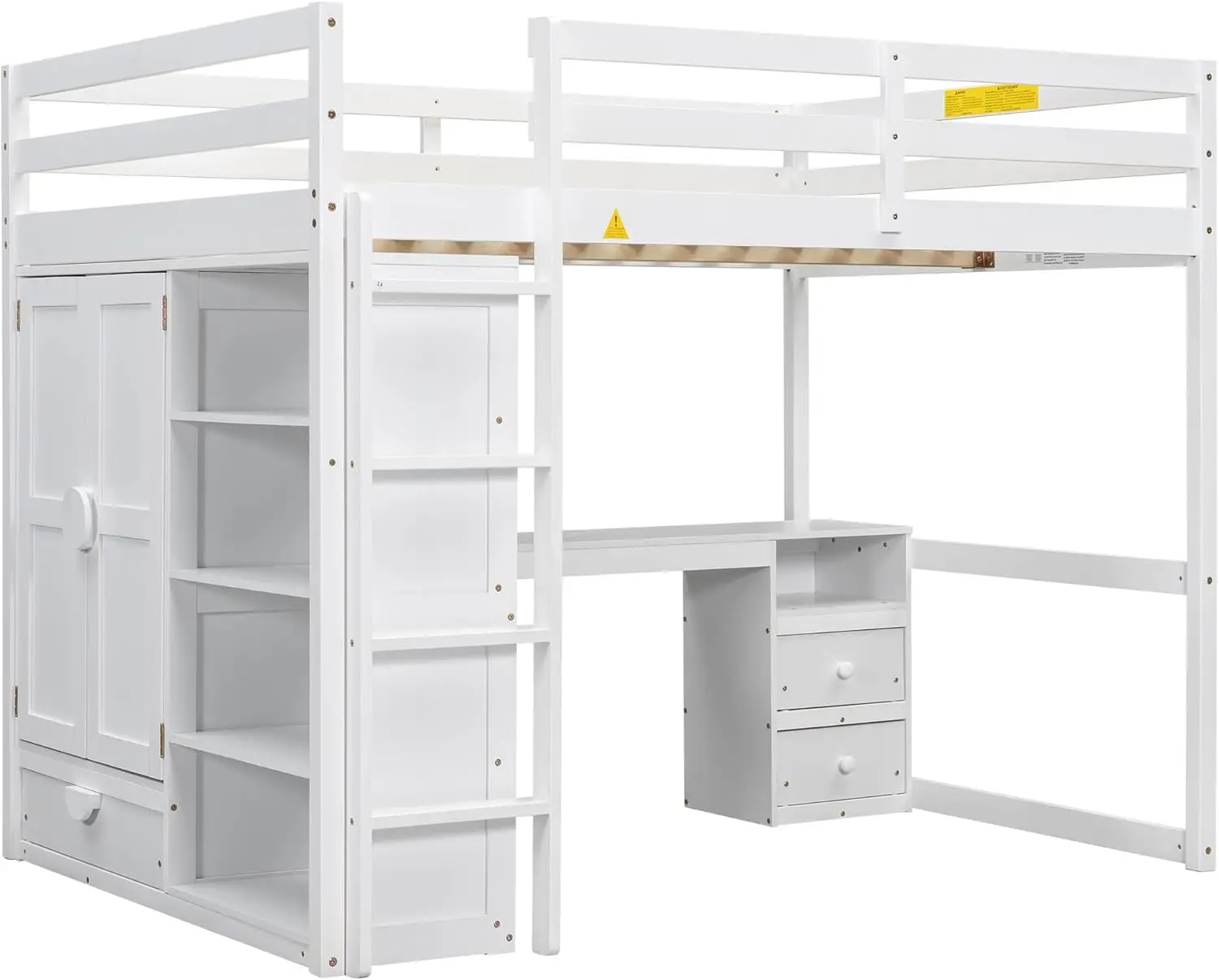 Twin Loft Bed.Full Size Loft Bed with Desk & Wardrobe, Wood Loft Bed with Storage Drawers and Shelves, High Bed Frame Full