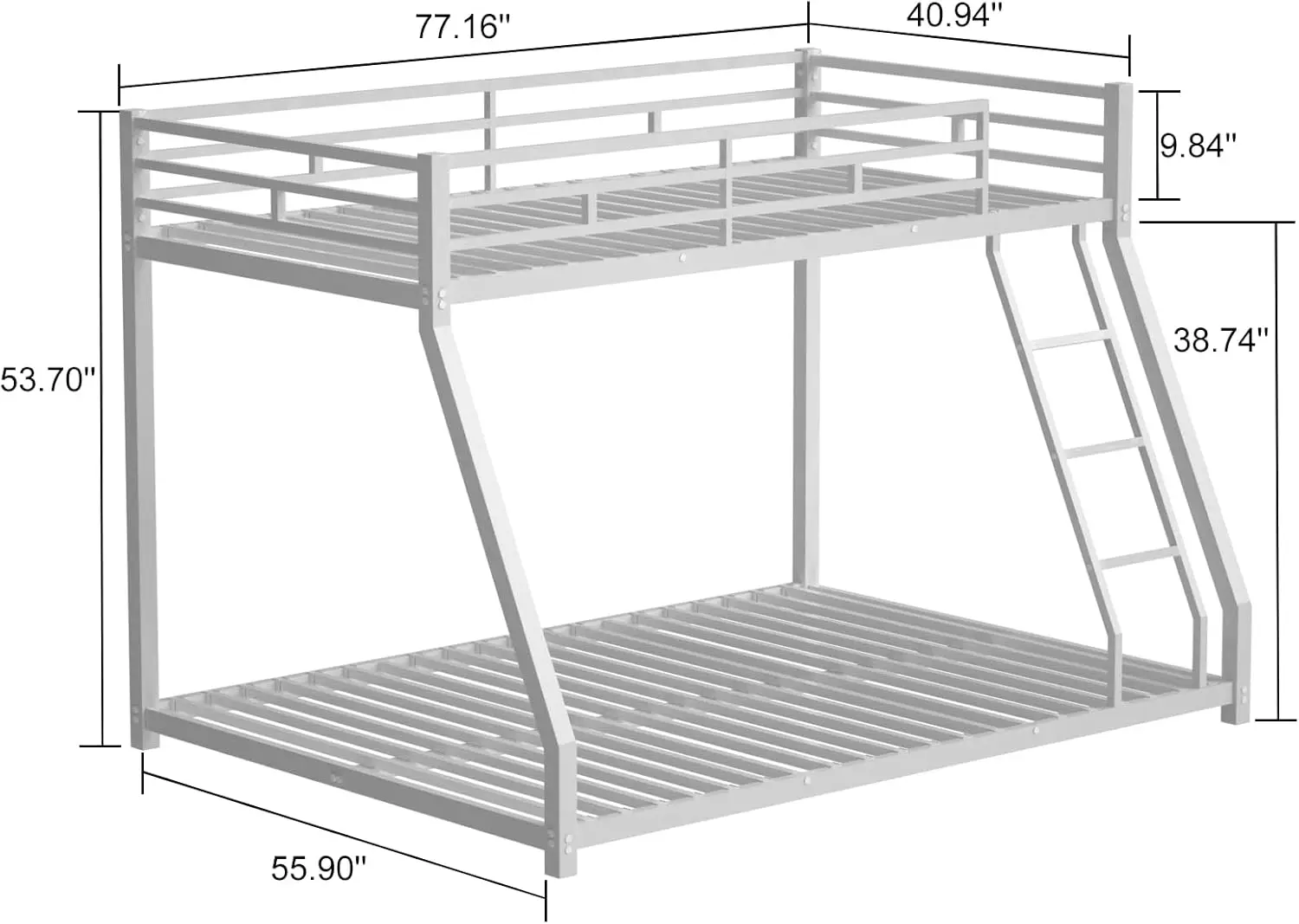 Upper Bed:39”x 74.8” (inner size)