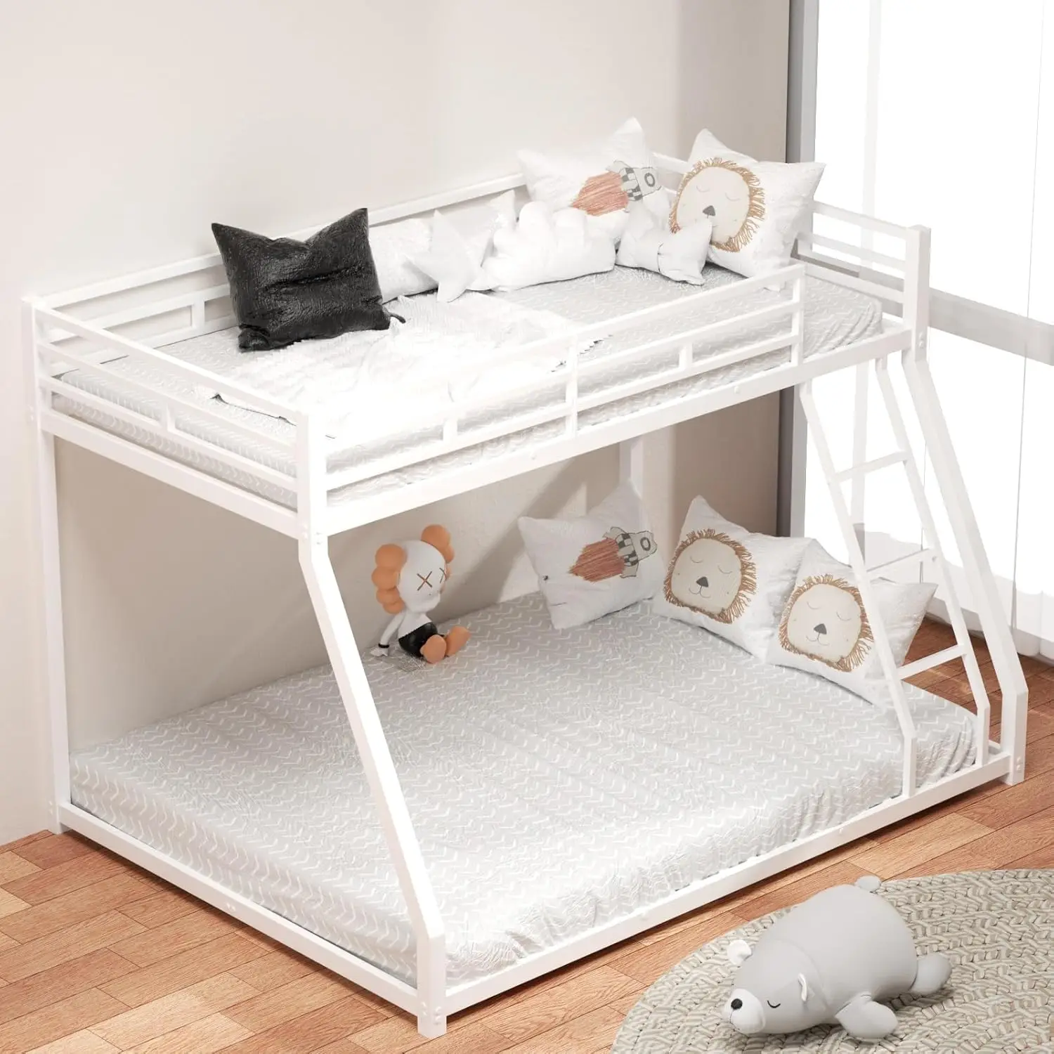 Twin Over Full Bunk Bed with Metal Frame, Space-Saving Design, Kids Teens Metal Bed,Easy Assembly,White