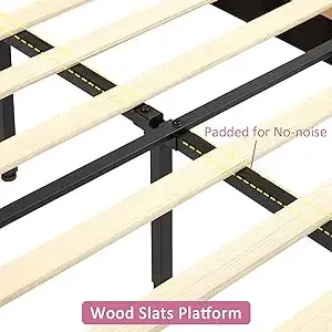 The slatted frame is made of a combination of plywood, the bearing capacity is up to 550LBS, and this upholstered bed can stay firm and quiet while sleeping. The slats kit is included so you won’t need a box spring.