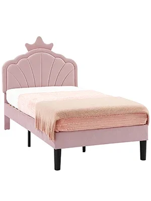 VECELO Pink Twin Size Bed Frame Upholstered with Headboard Crown Headboard Design for Your Little Princess