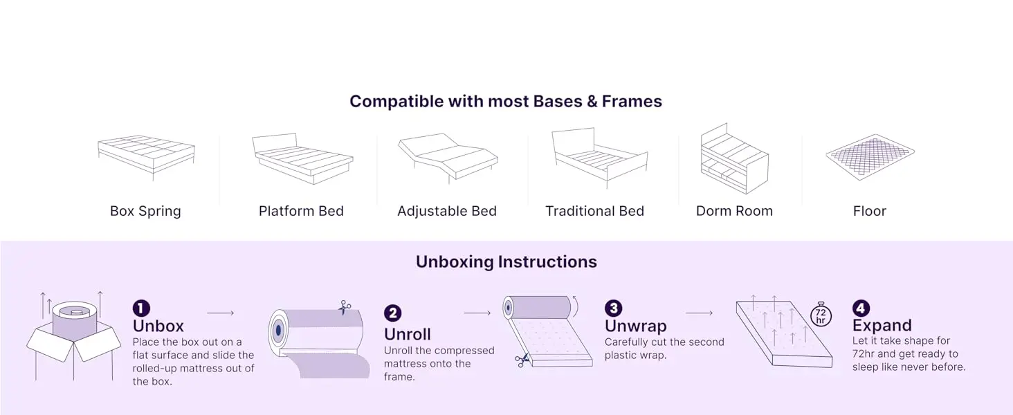 There might be a faint “new mattress” smell upon unboxing. It’s non-toxic and should dissipate within a few days if aired properly.