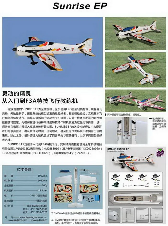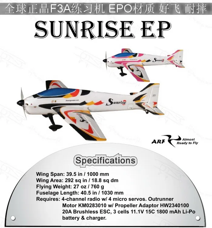 TWM 30 Class 1000mm Wingspan F3A Remote Control Airplane Sunrise EP Trainer Aircraft Good for Beginner