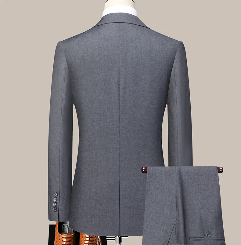 Elegant Men's Wedding Suits Solid Color 2 Piece Jacket Pant Daily Casual Business Double Breasted Six-buttons Formal Suits Custo