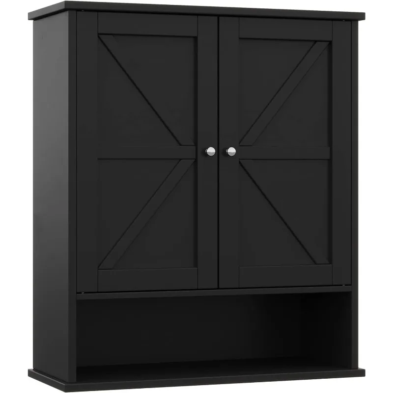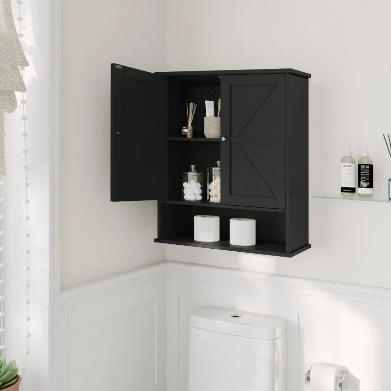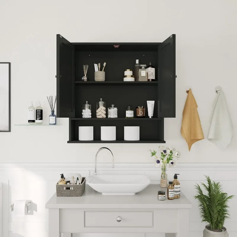 Two Door Wall Cabinet, Wooden Medicine Cabinet, Wall Mounted Bathroom Storage Cabinet with Inner Adjustable Shelf, for Bathroom