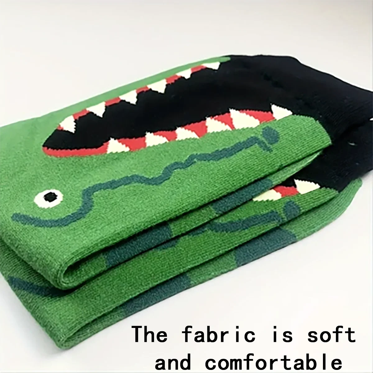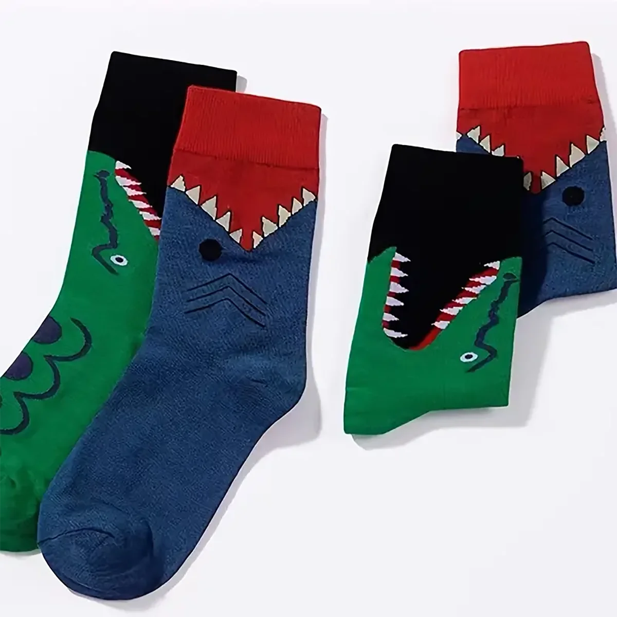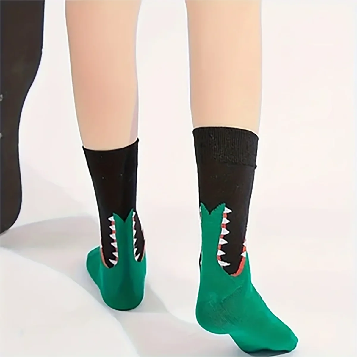 Two pairs of cartoon crocodile patterned round necked socks for young children and boys, trendy socks with medium length,