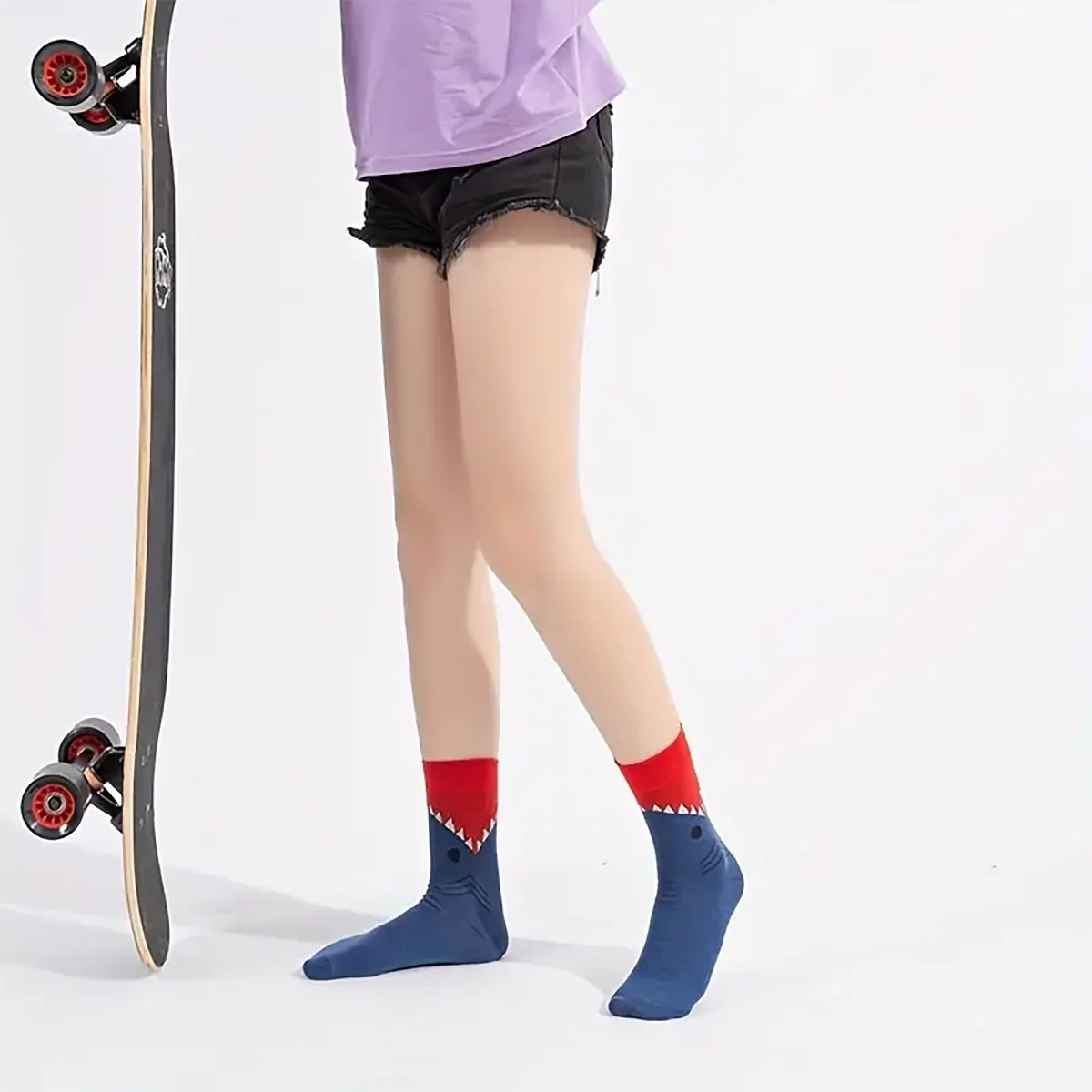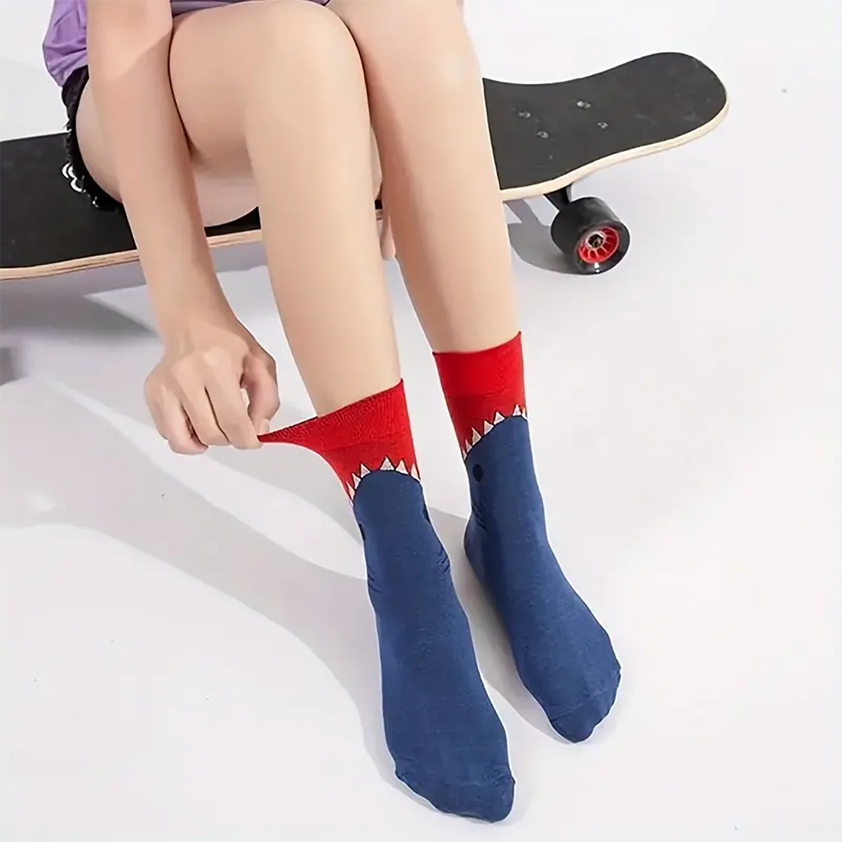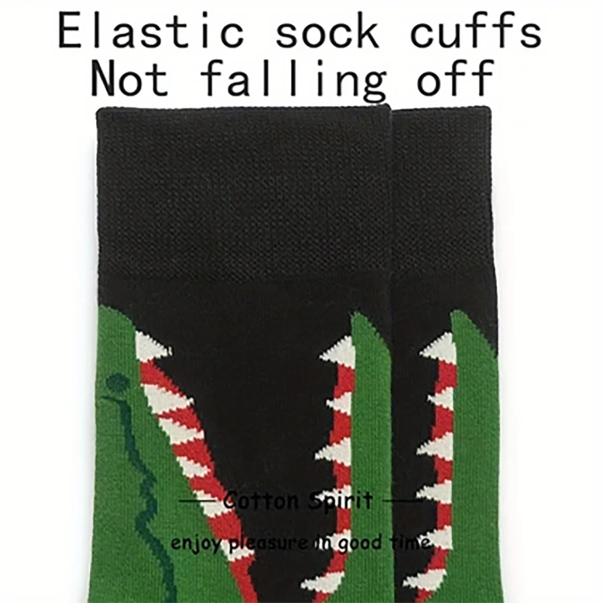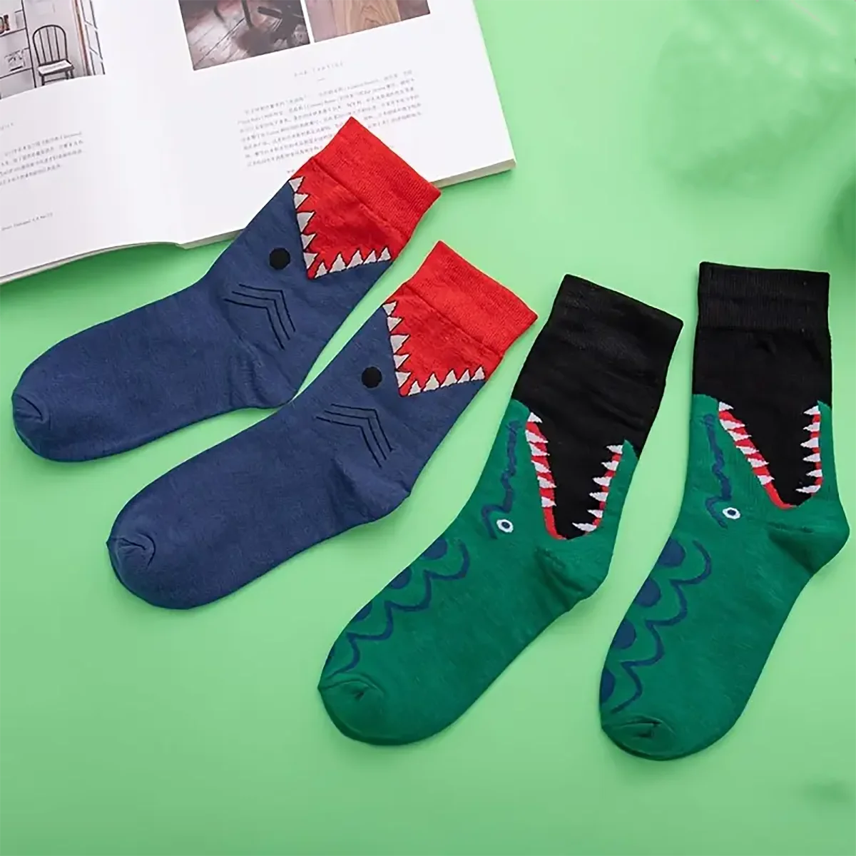 Two pairs of cartoon crocodile patterned round necked socks for young children and boys, trendy socks with medium length,