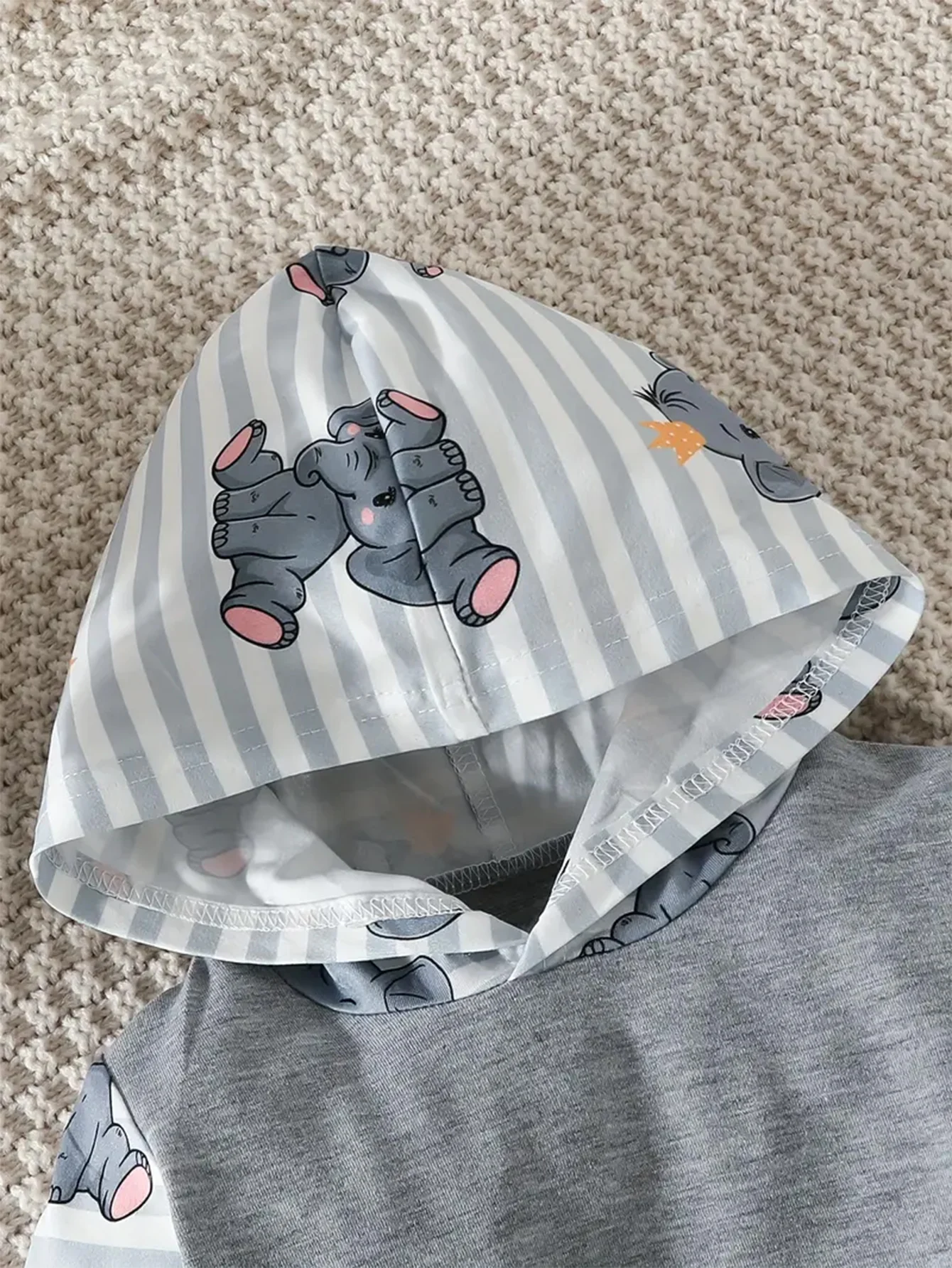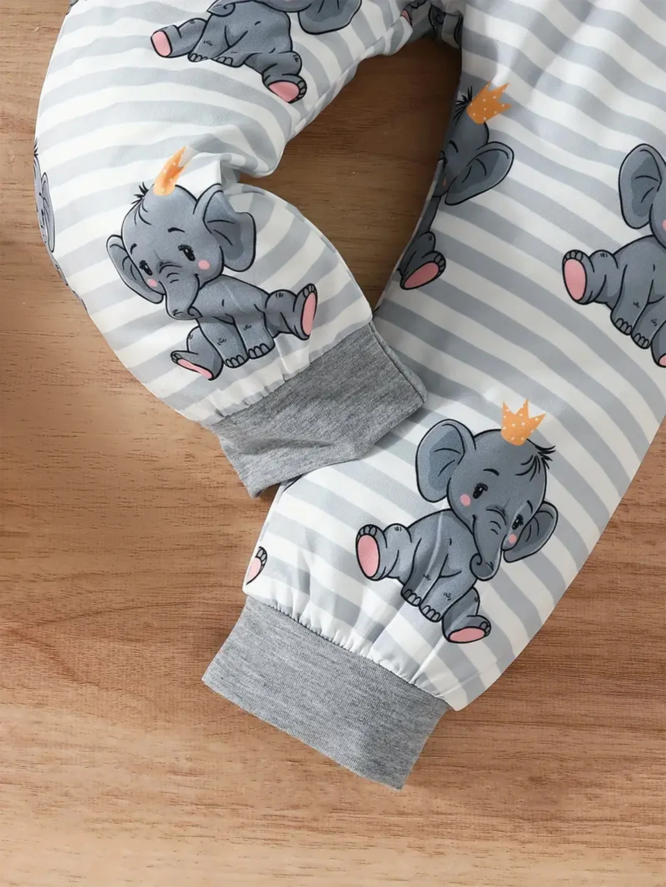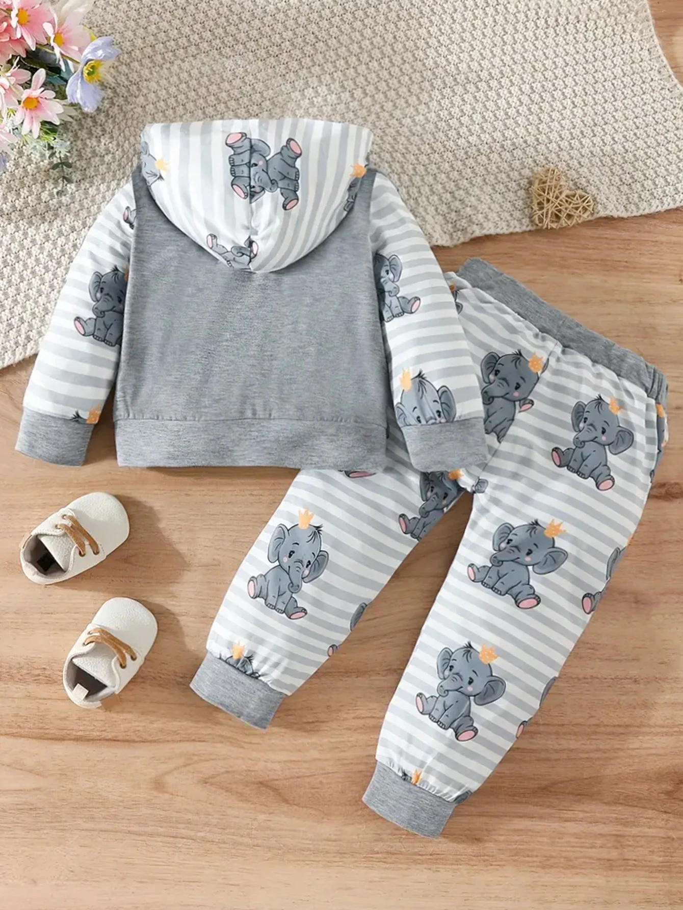 Two-piece set, cute baby boy and elephant cartoon print comfortable long-sleeved hooded top + pants set, cute casual and comfort