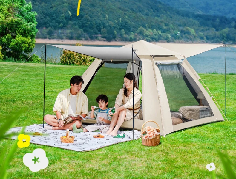 TXZ Camping Tent Equipment Outdoor Portable Folding Tent Automatic Quick-Pitch Silver Gel Tent Waterproof Sunscreen Windproof