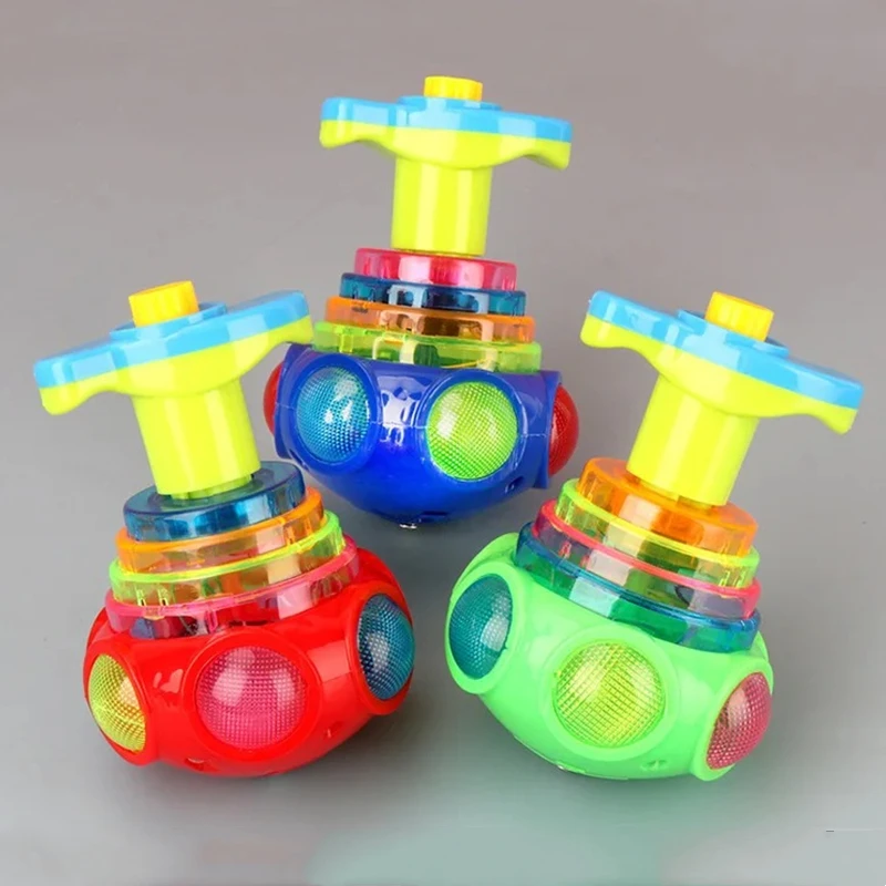 UFO Flashing Spinning Top Kids Gyro Light Up Toy Kids Piggy LED Music Gyroscope Launcher Rotating Toys Fun Birthday Party Favors