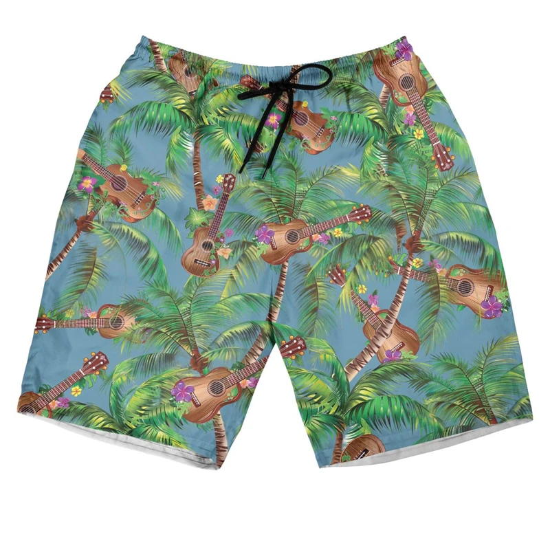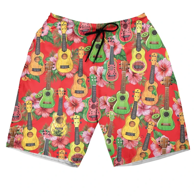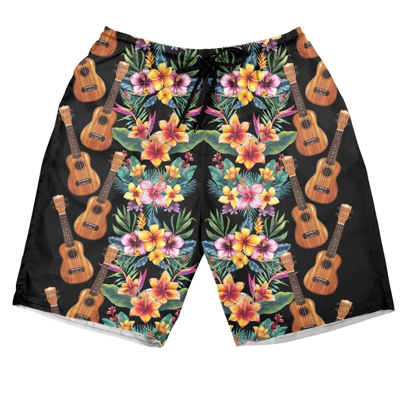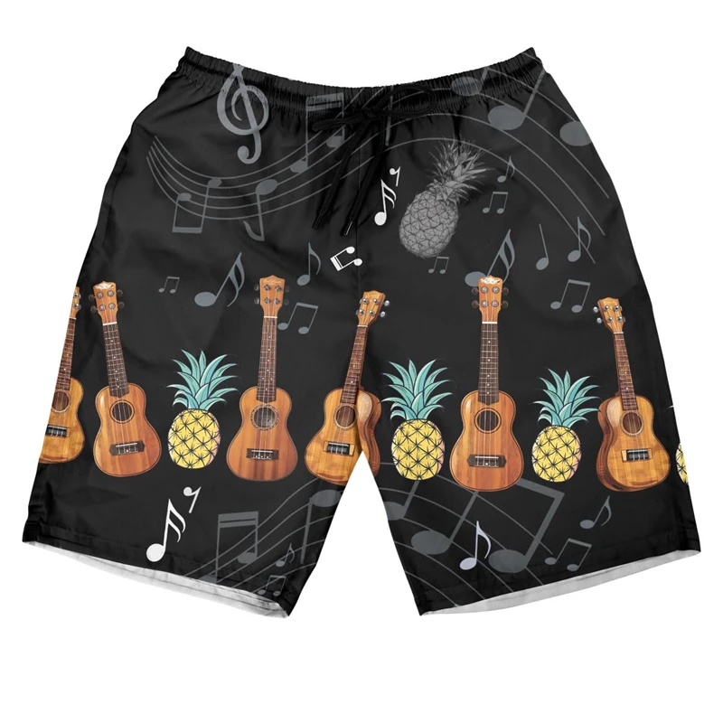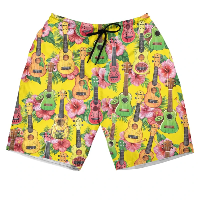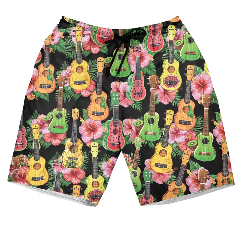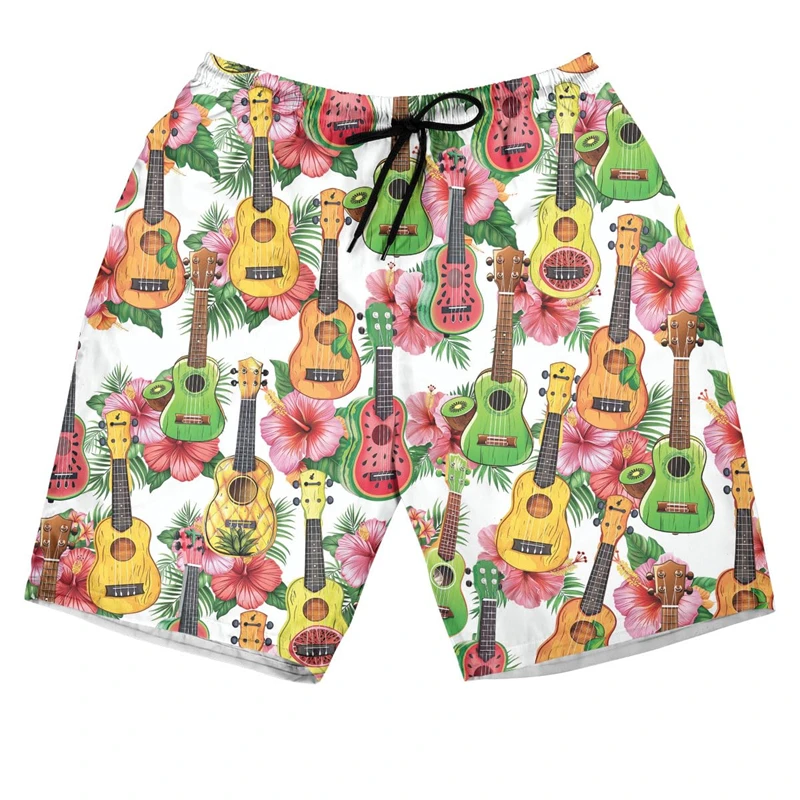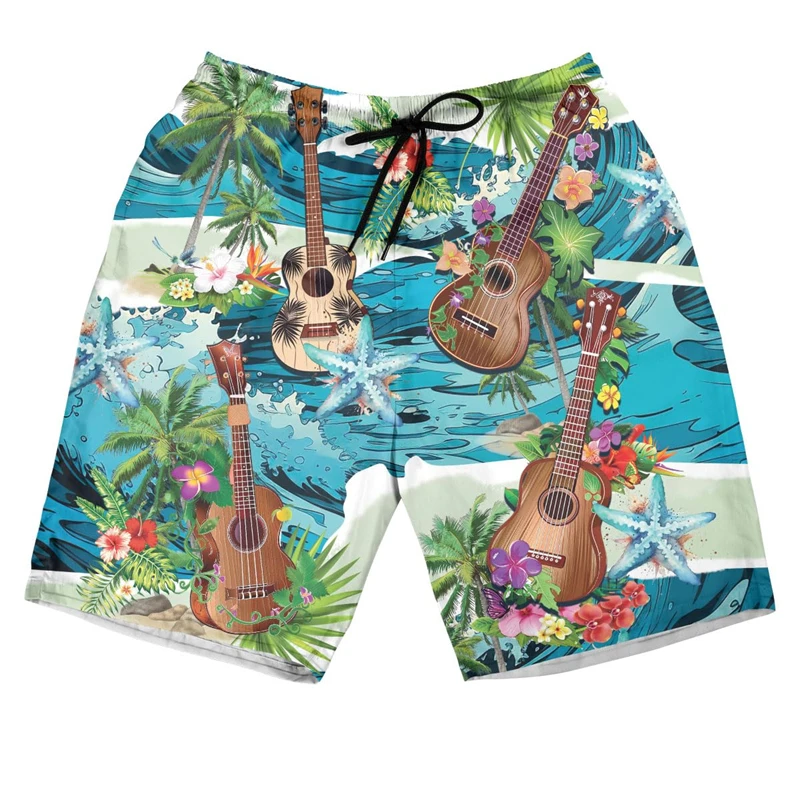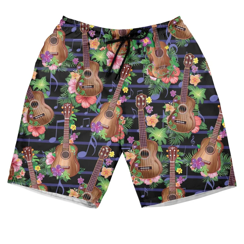 Ukulele Graphic Short Pants For Men Clothes Instrument Players Beach Shorts Hawaiian Trunks Violin 3D Printed Trunks Trousers