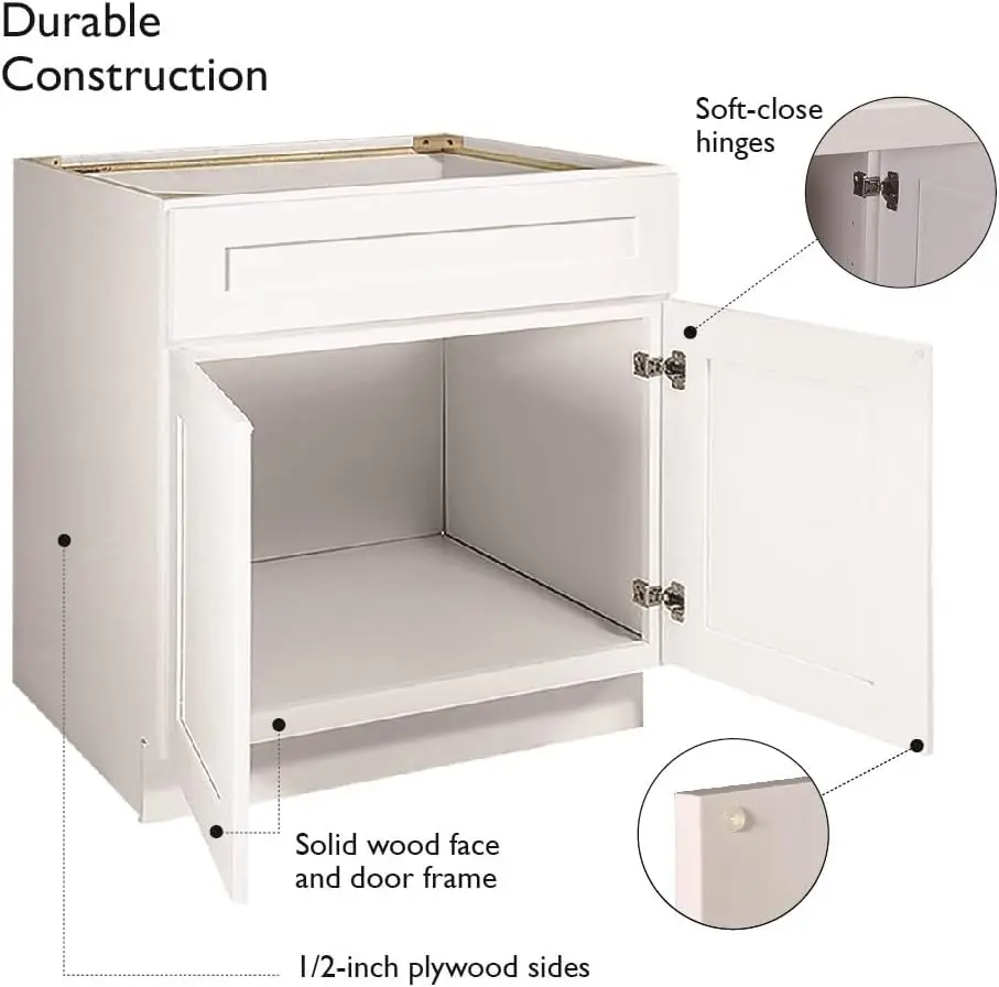 Unassembled Sink Base Kitchen Cabinet SB36 36 W x 24 D x 34.5 H Painted White Solid Wood