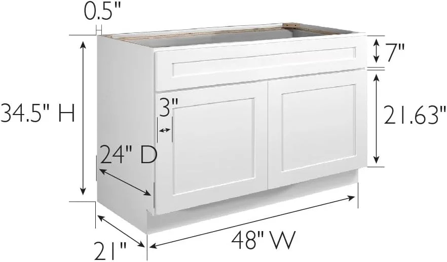 - Kitchen Sink Base Cabinet SB48: Measures 34-1/2-inches H by 48-inches W and features 2 doors