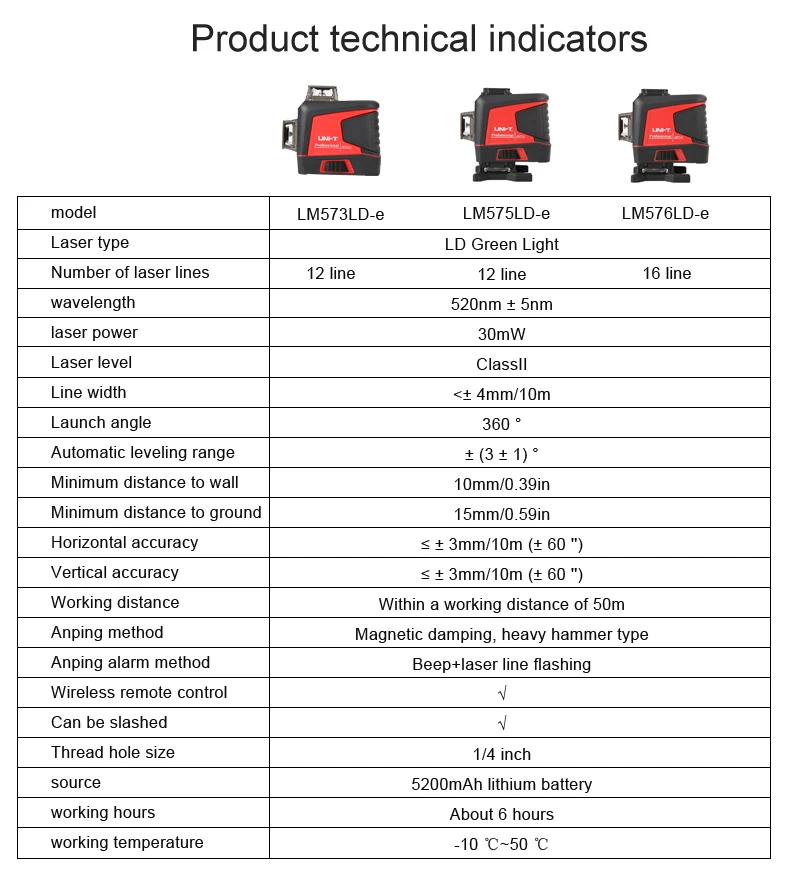 UNI-T LM576LD-e self leveling green laser level, 12/16 line green horizontal and vertical green beam laser tool cross line level