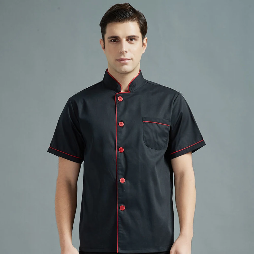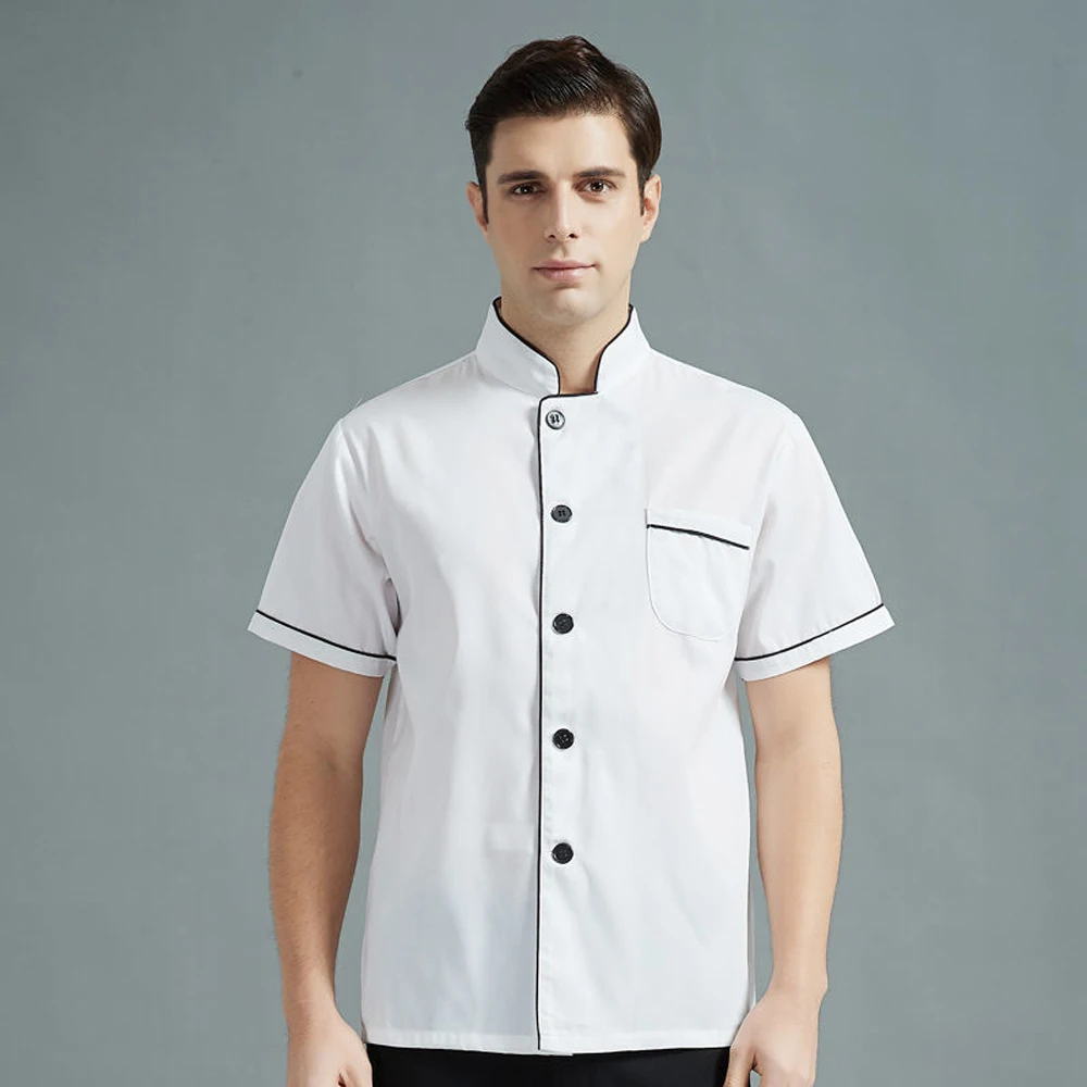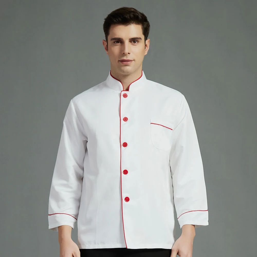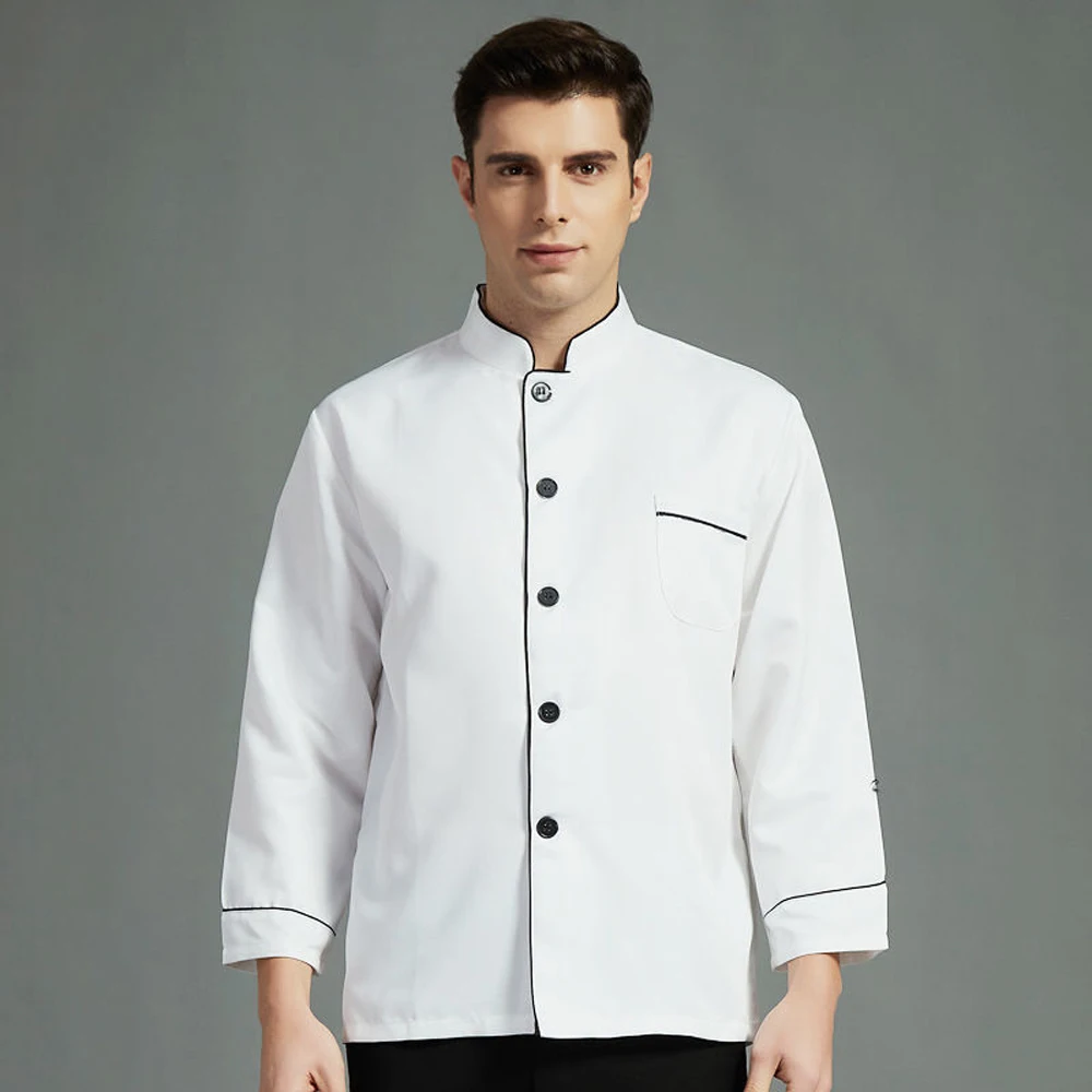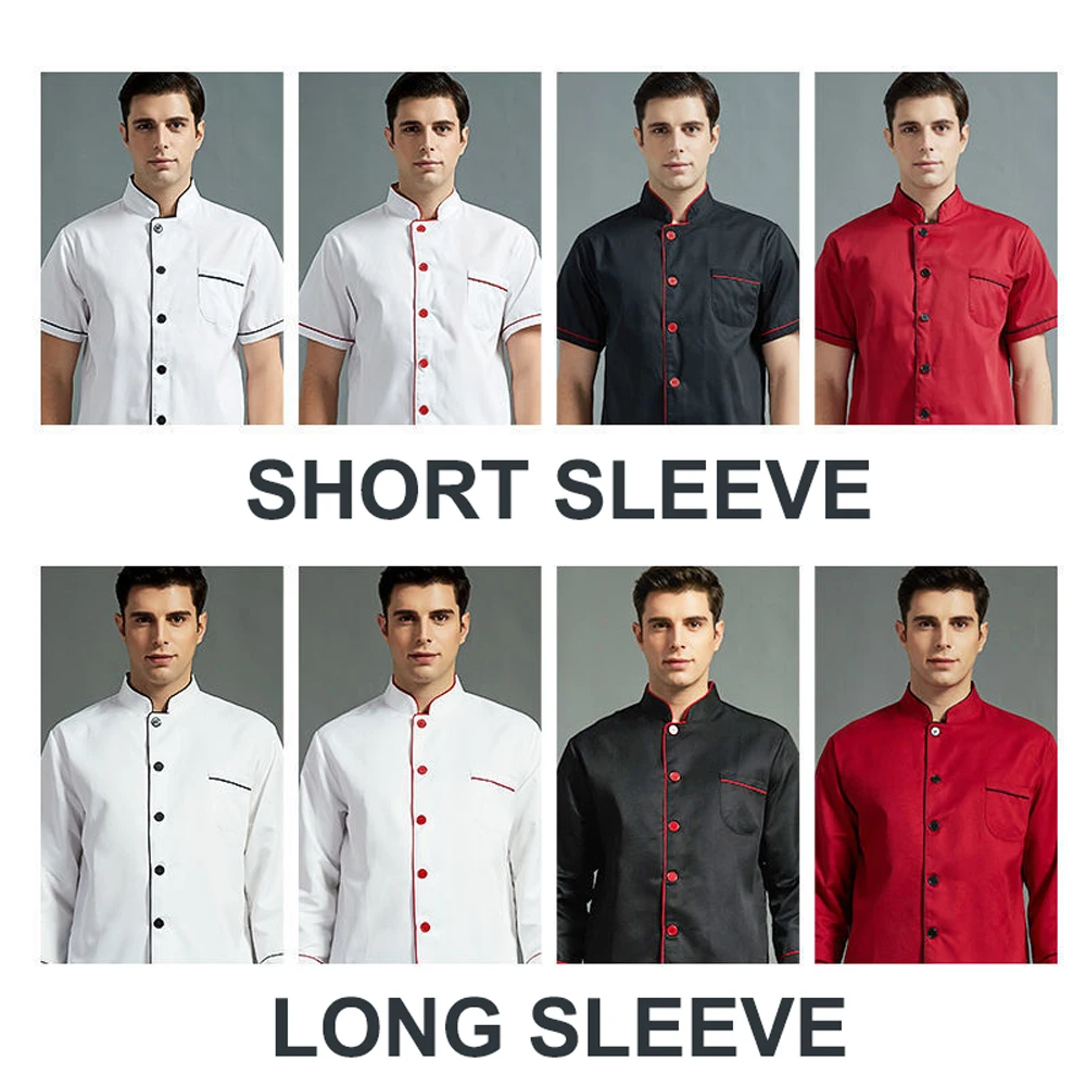 Unisex Chef’s Uniform Solid Color Single-breasted Stand Collar Long Sleeve/short Sleeve Chef’s Jacket Overalls Bakery Uniform