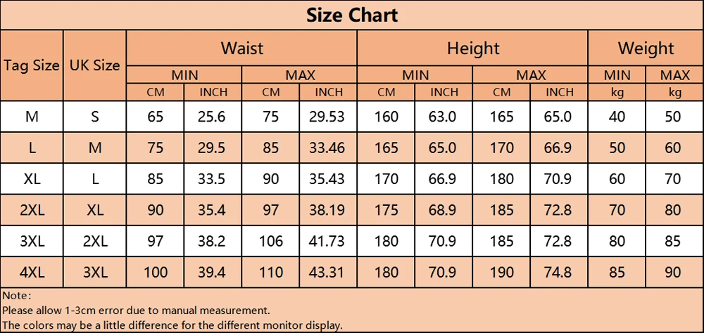 Please allow 1-2cm measuring deviation due to manual measurement.