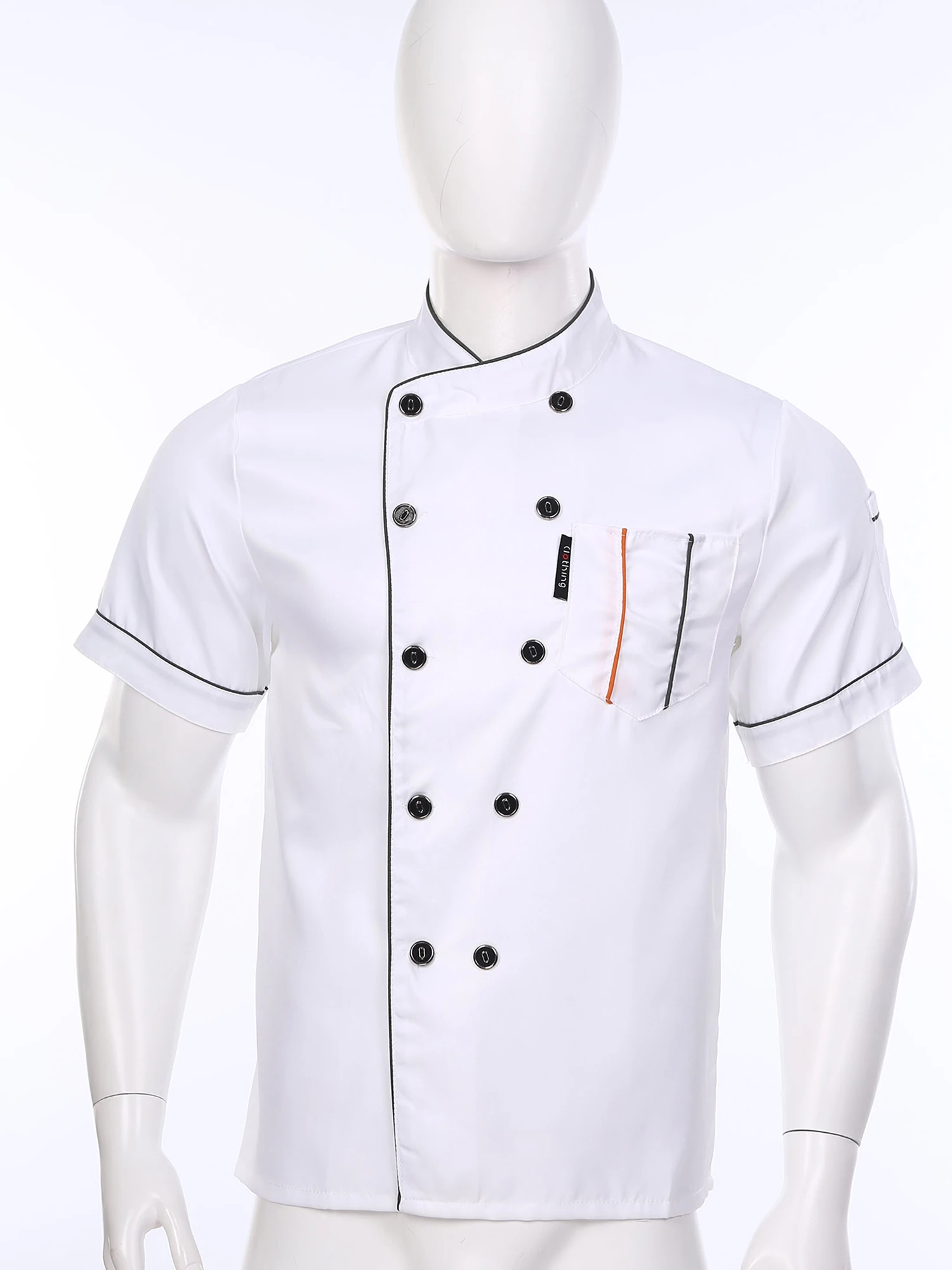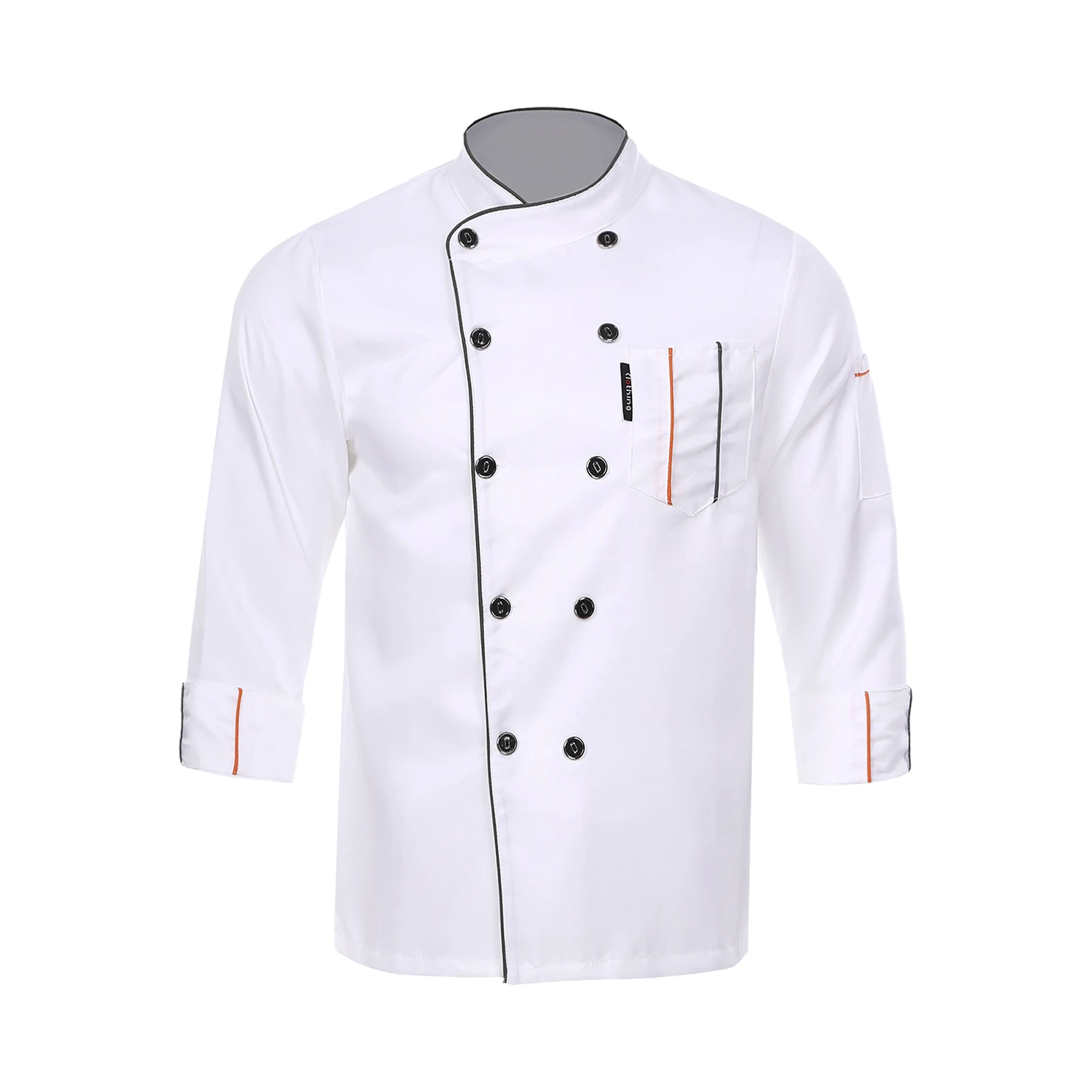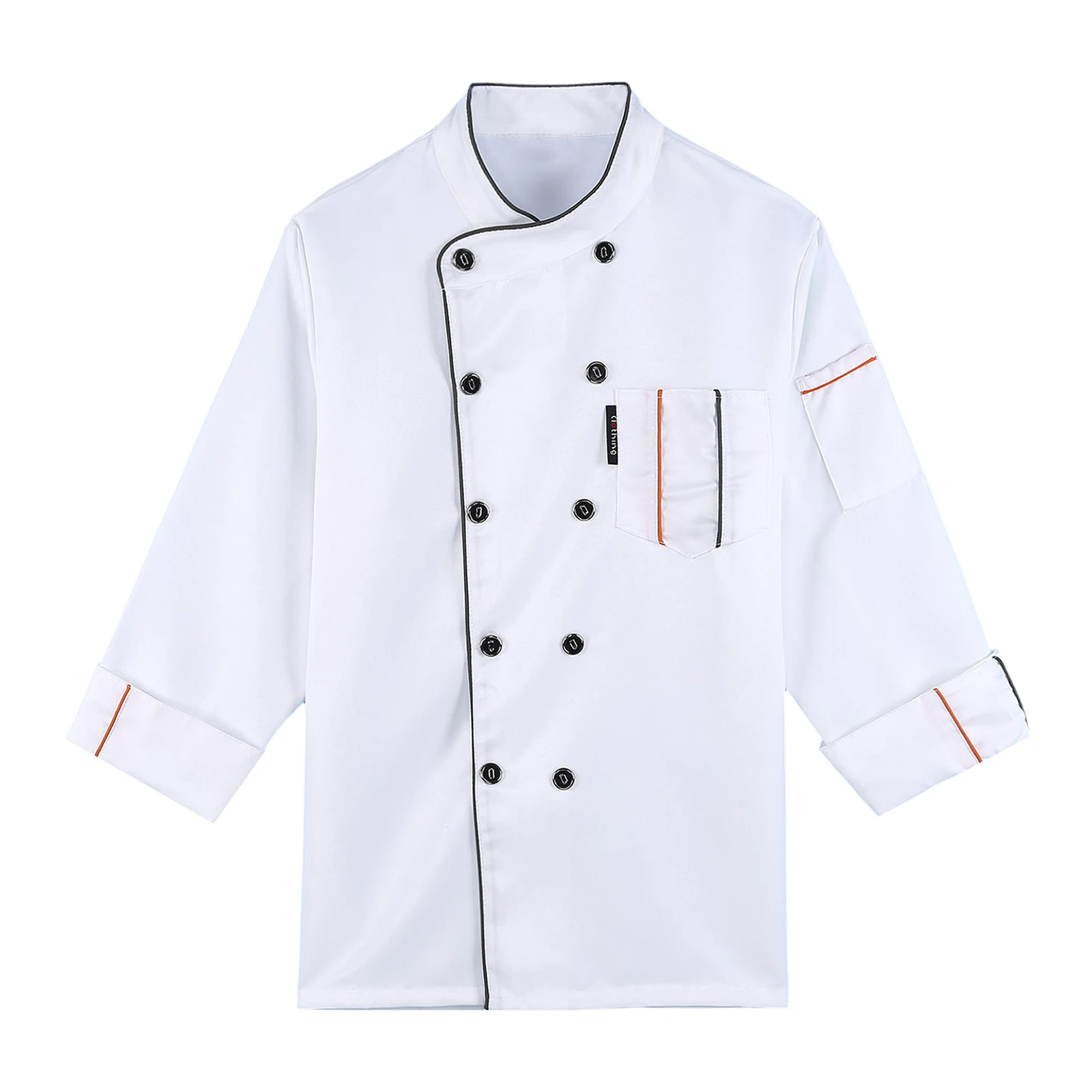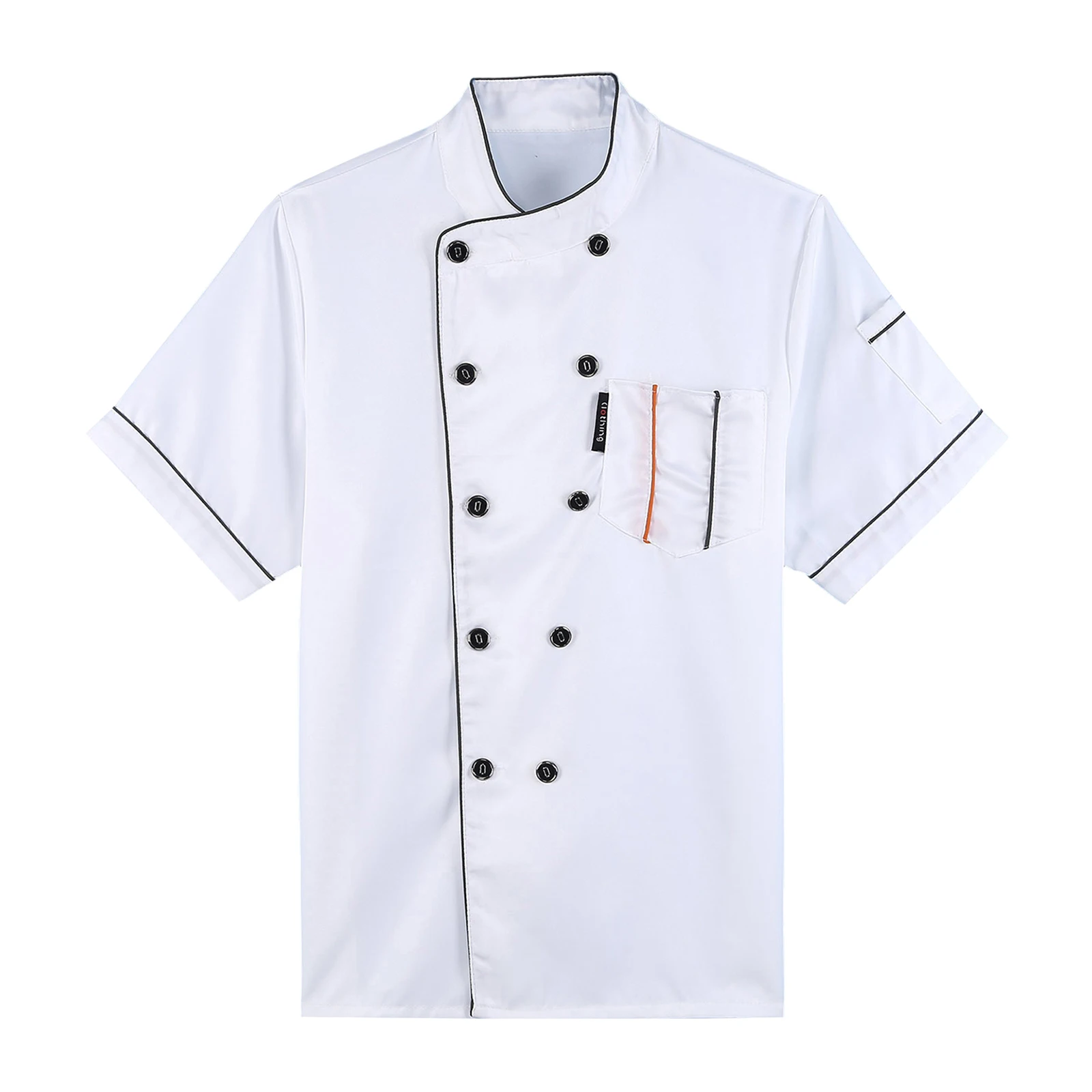 Chef jacket for men and women, cross-over collar, double-breasted for easy wearing, contrast color trim details, simple but stylish.