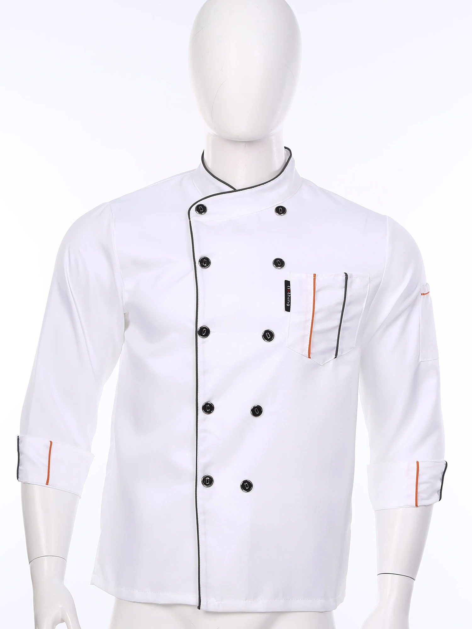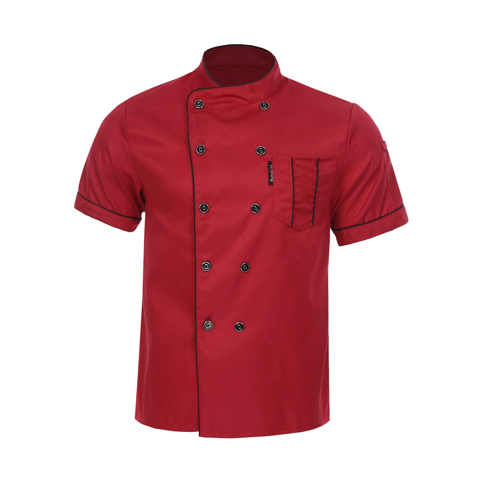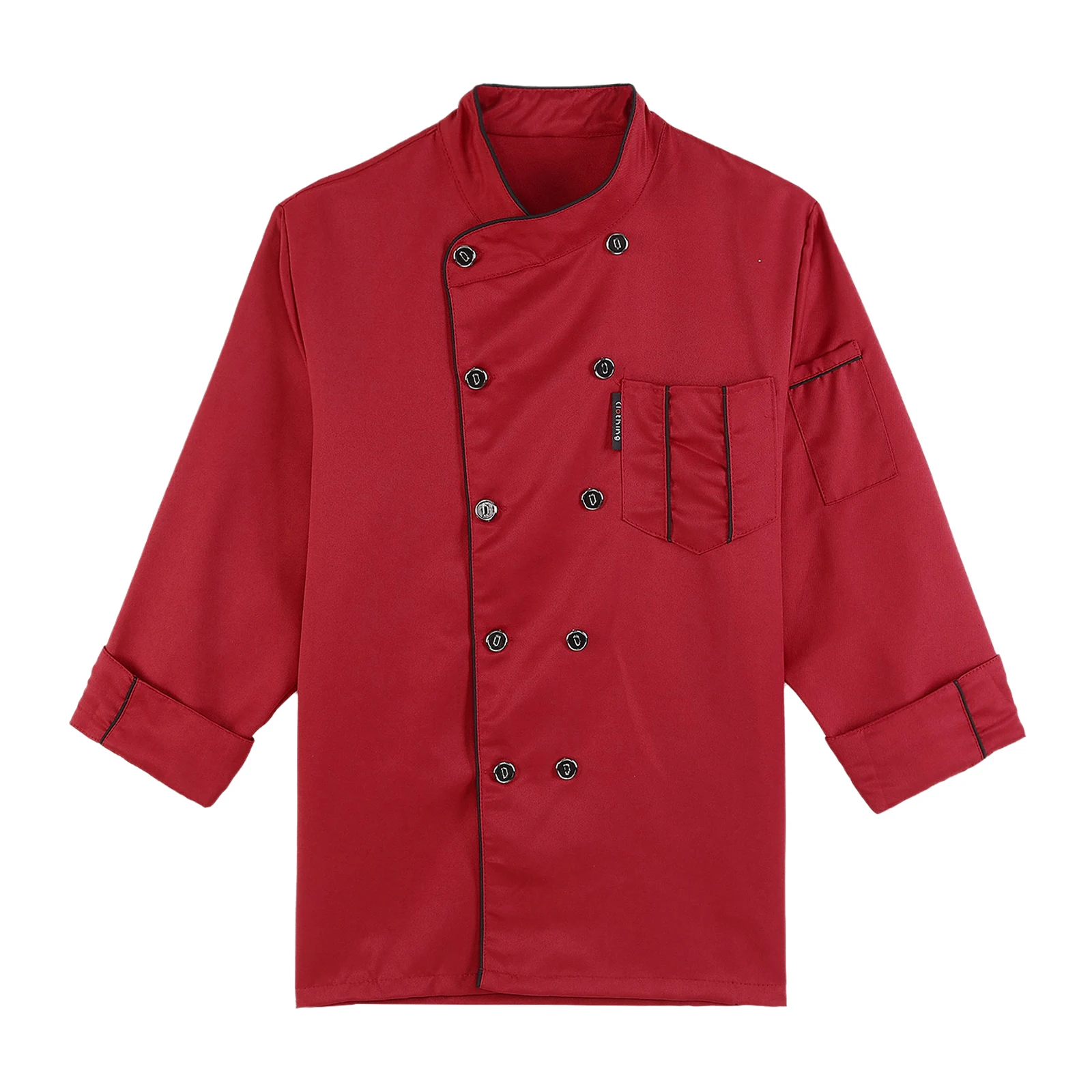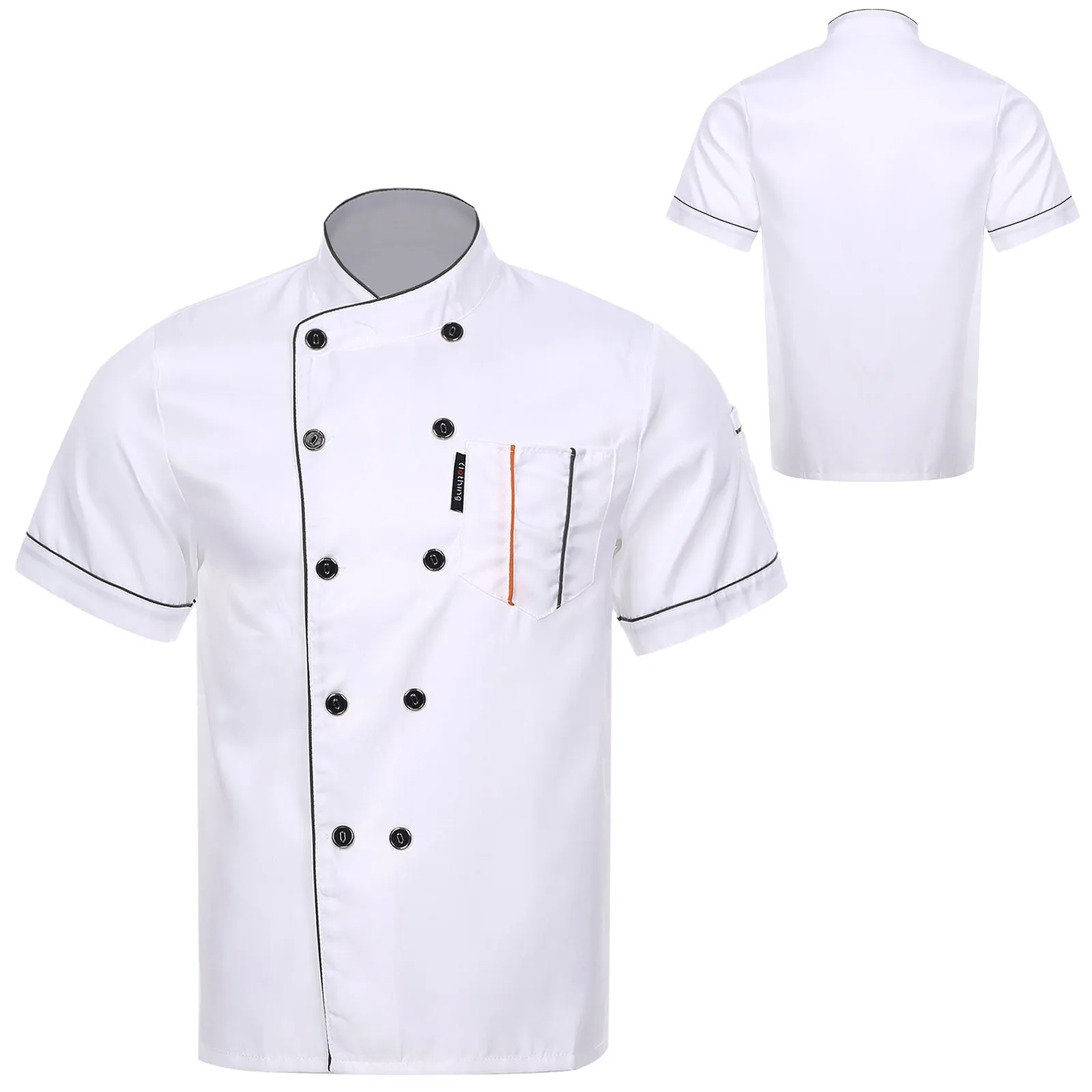 Chef jacket for men and women, cross-over collar, double-breasted for easy wearing, contrast color trim details, simple but stylish.
