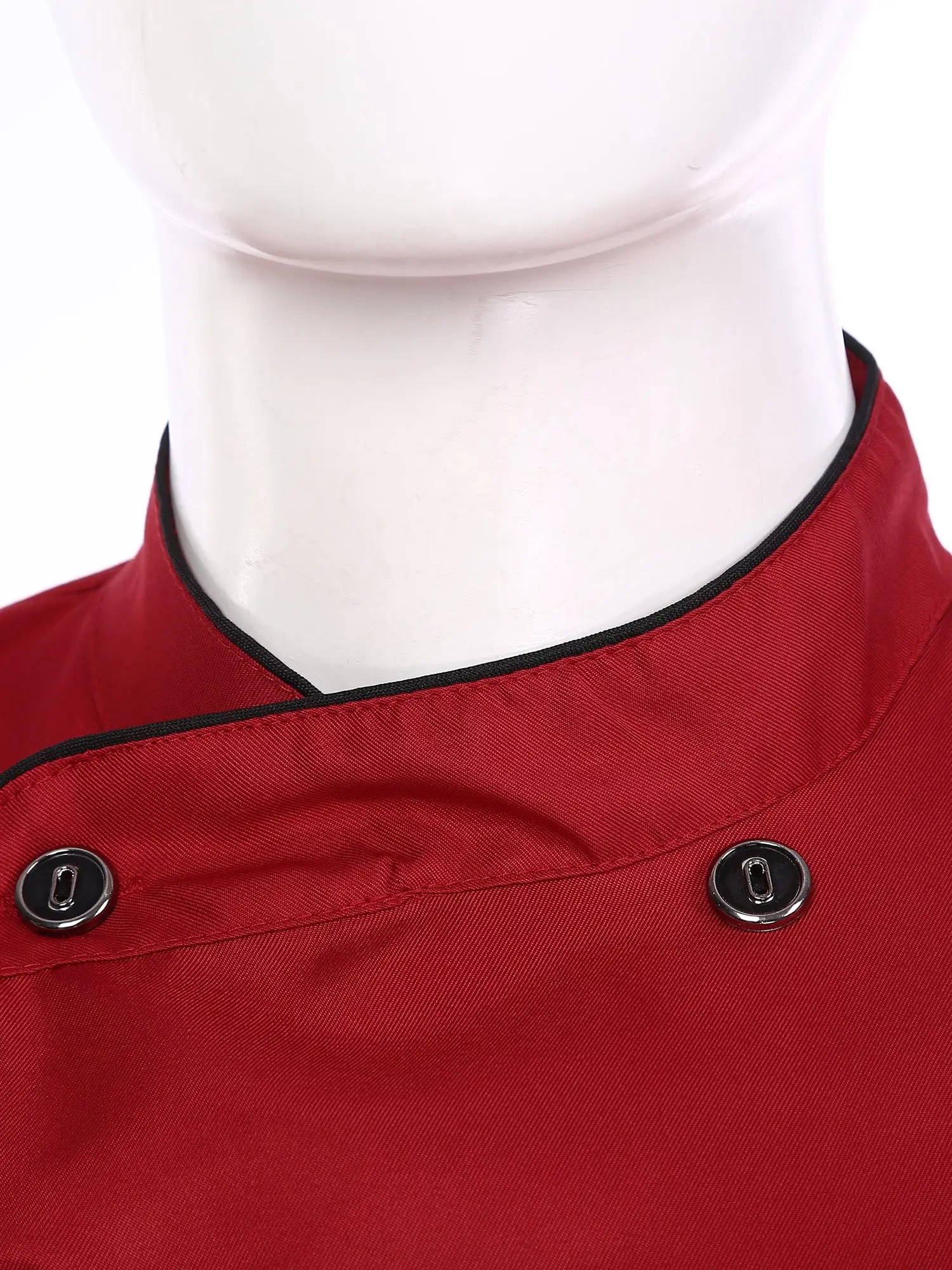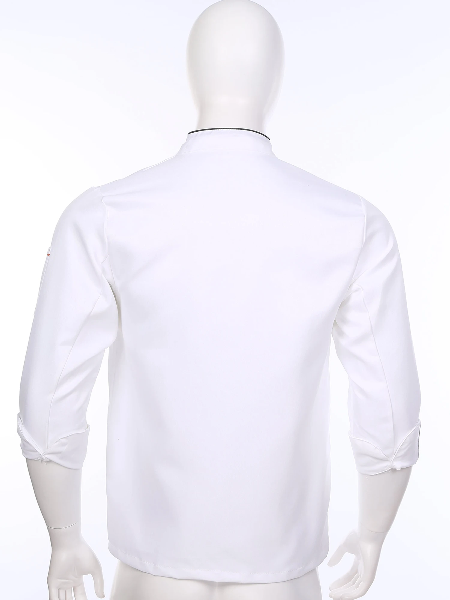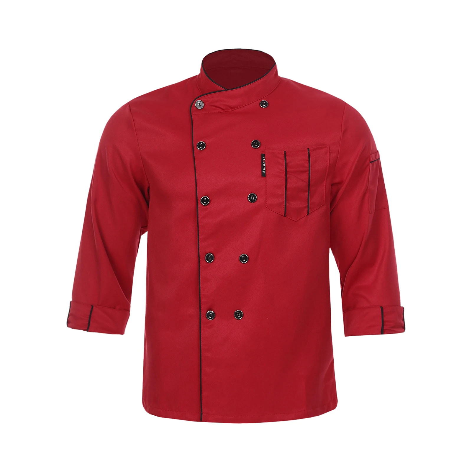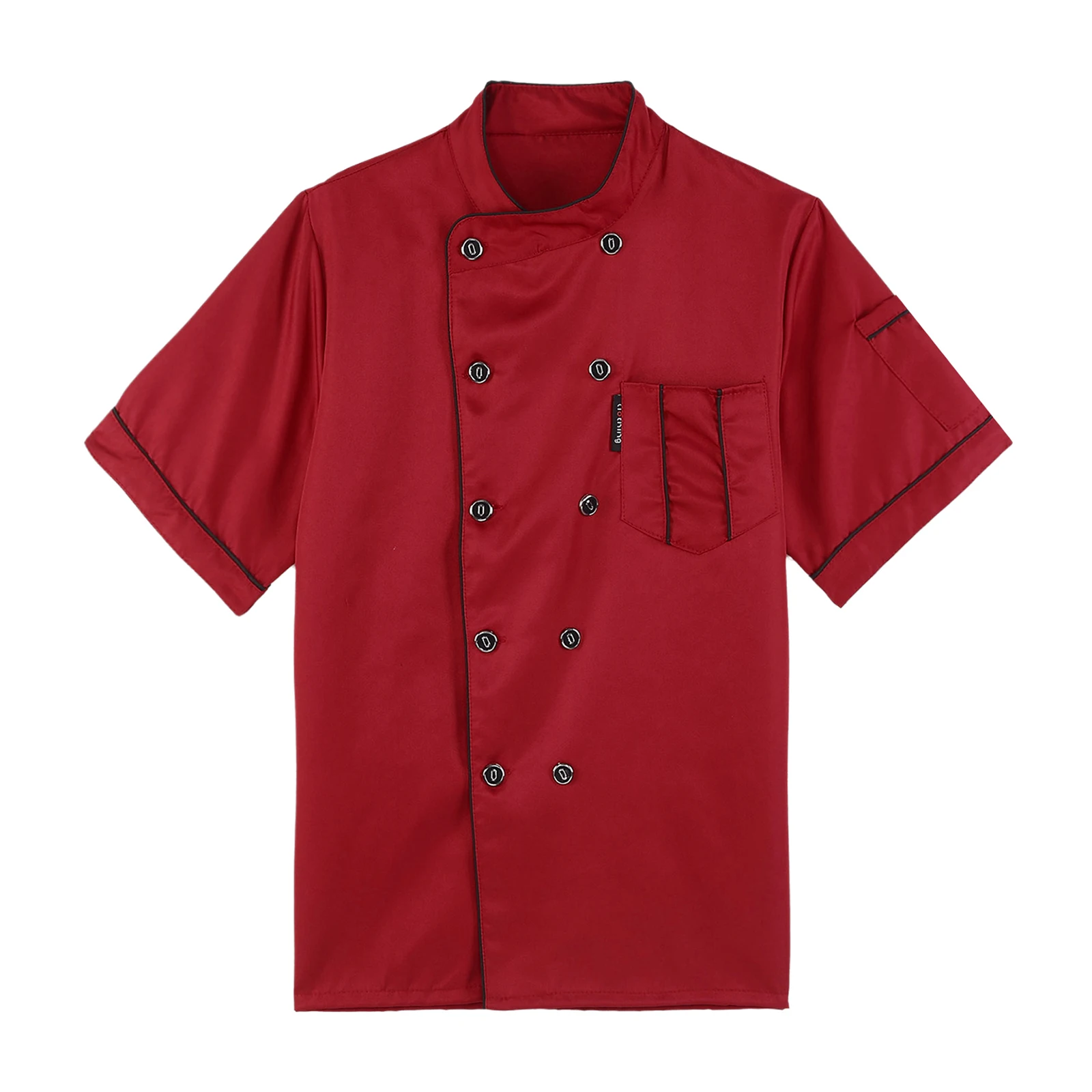 Chef jacket for men and women, cross-over collar, double-breasted for easy wearing, contrast color trim details, simple but stylish.