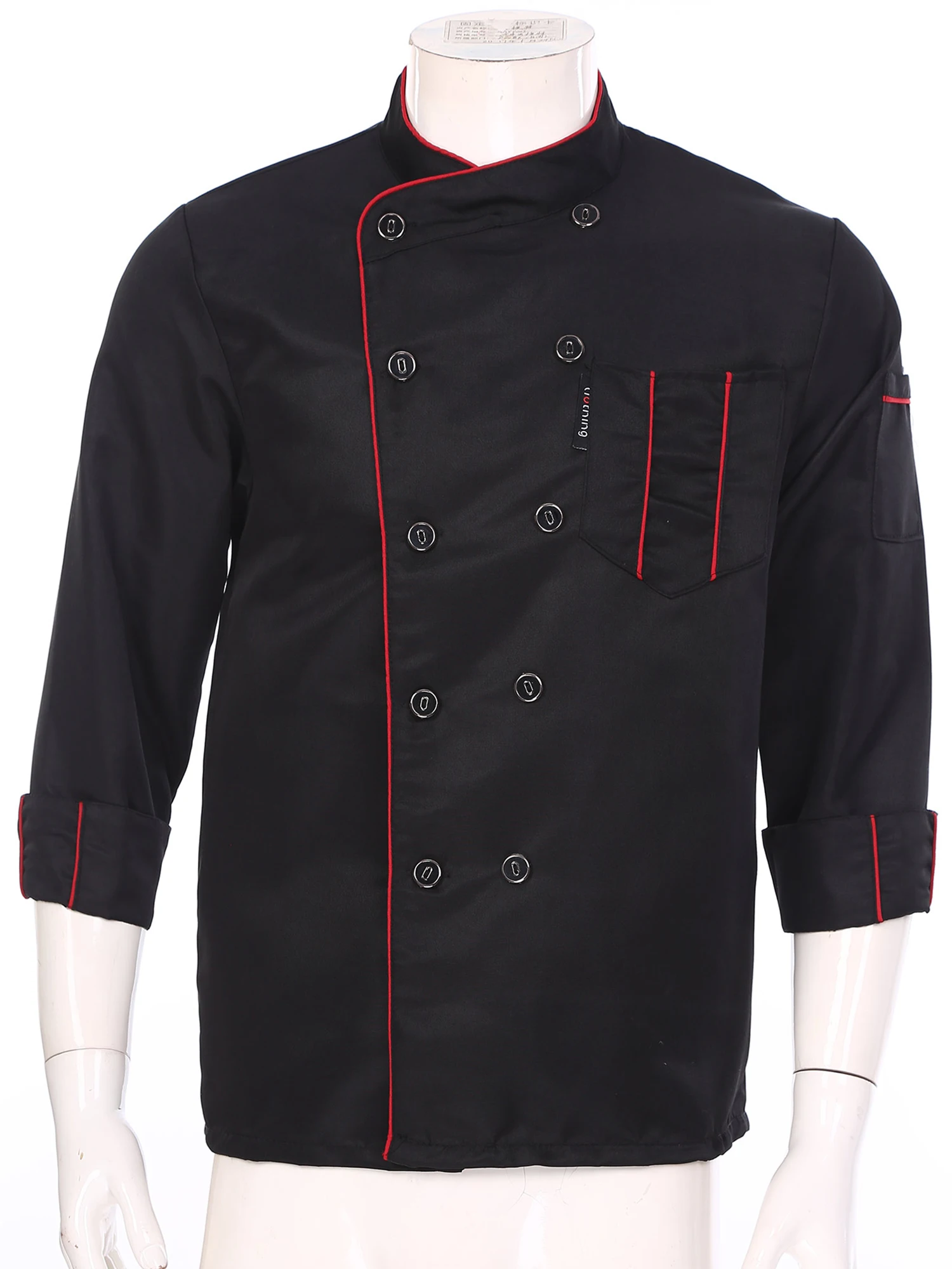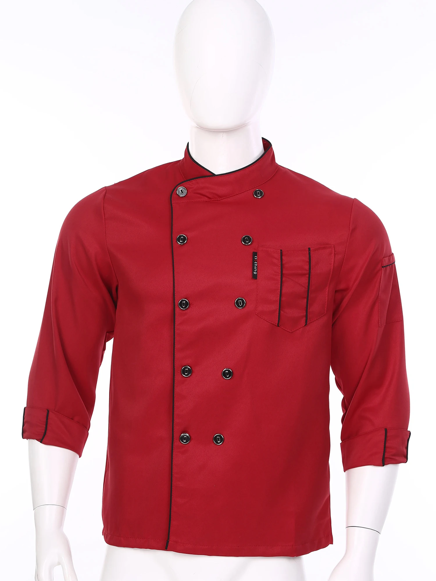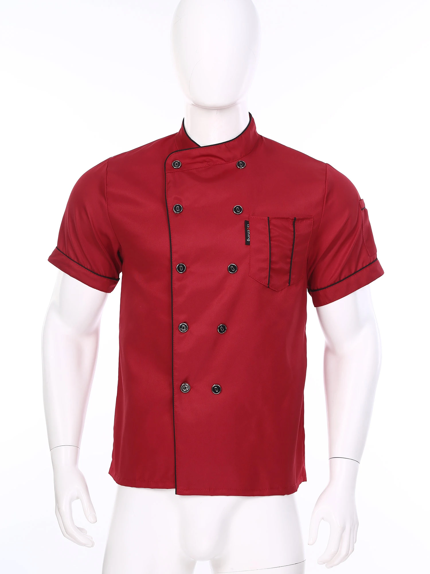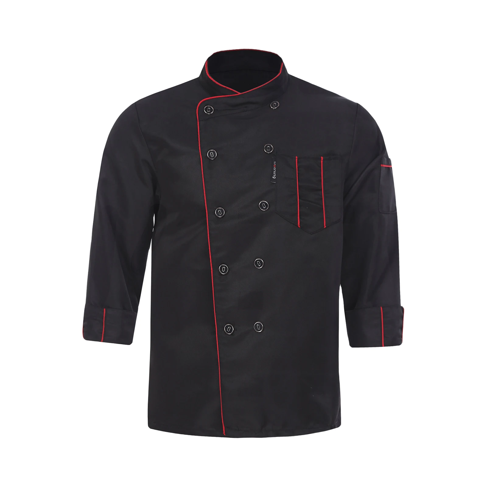 Chef jacket for men and women, cross-over collar, double-breasted for easy wearing, contrast color trim details, simple but stylish.